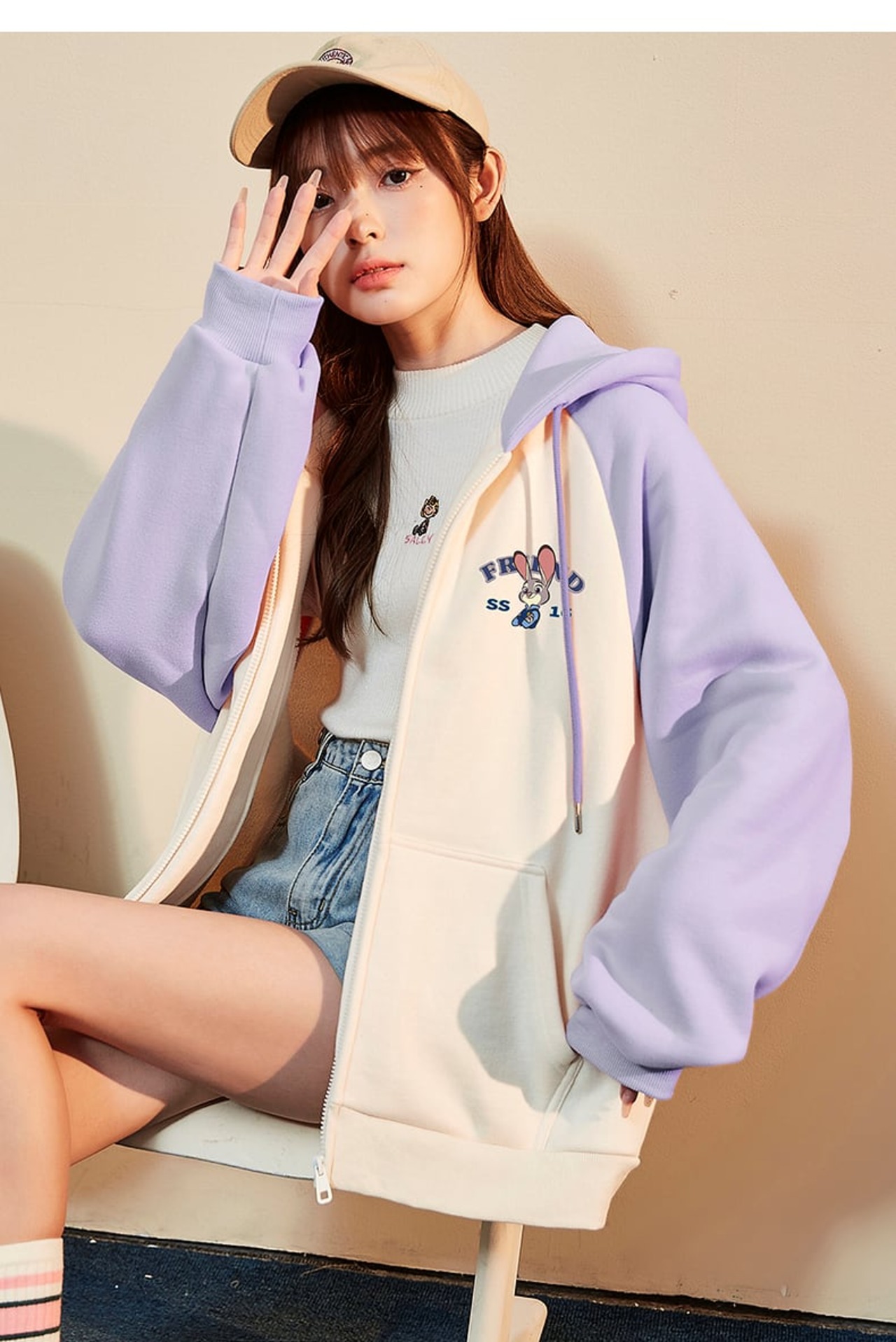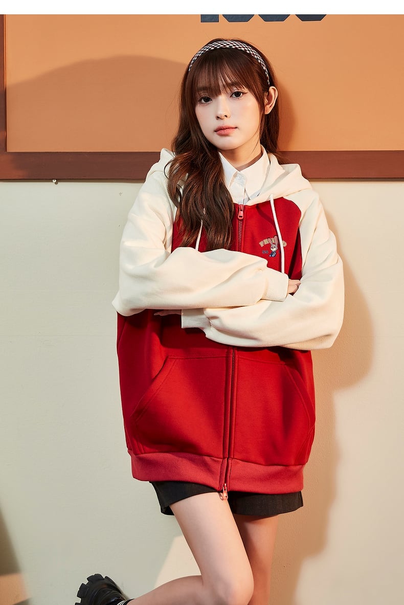 大人可愛いウサギちゃんロゴフルジップパーカー全2色 裏起毛トップス <S-4522>