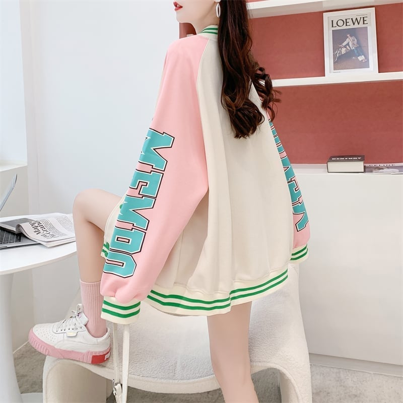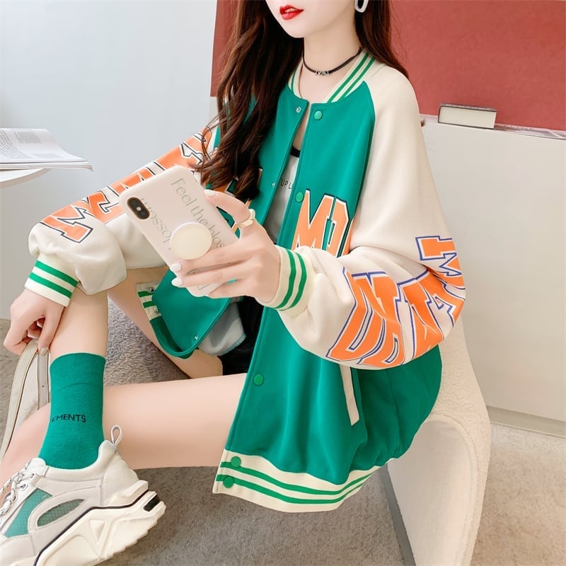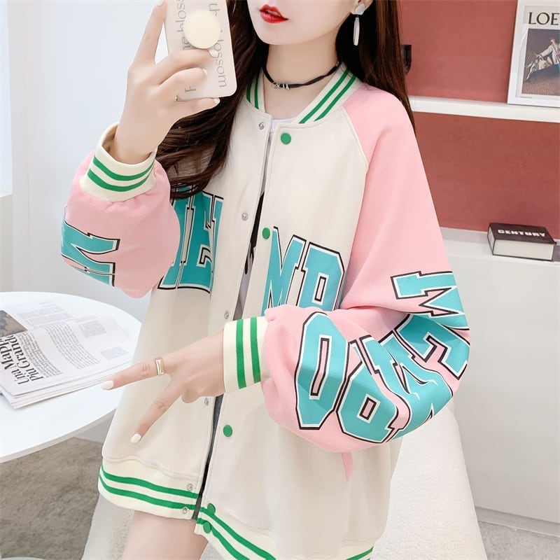 秋のおすすめ 三色 ワッフル刺?ロゴ スタジャン トップス<S-4071>