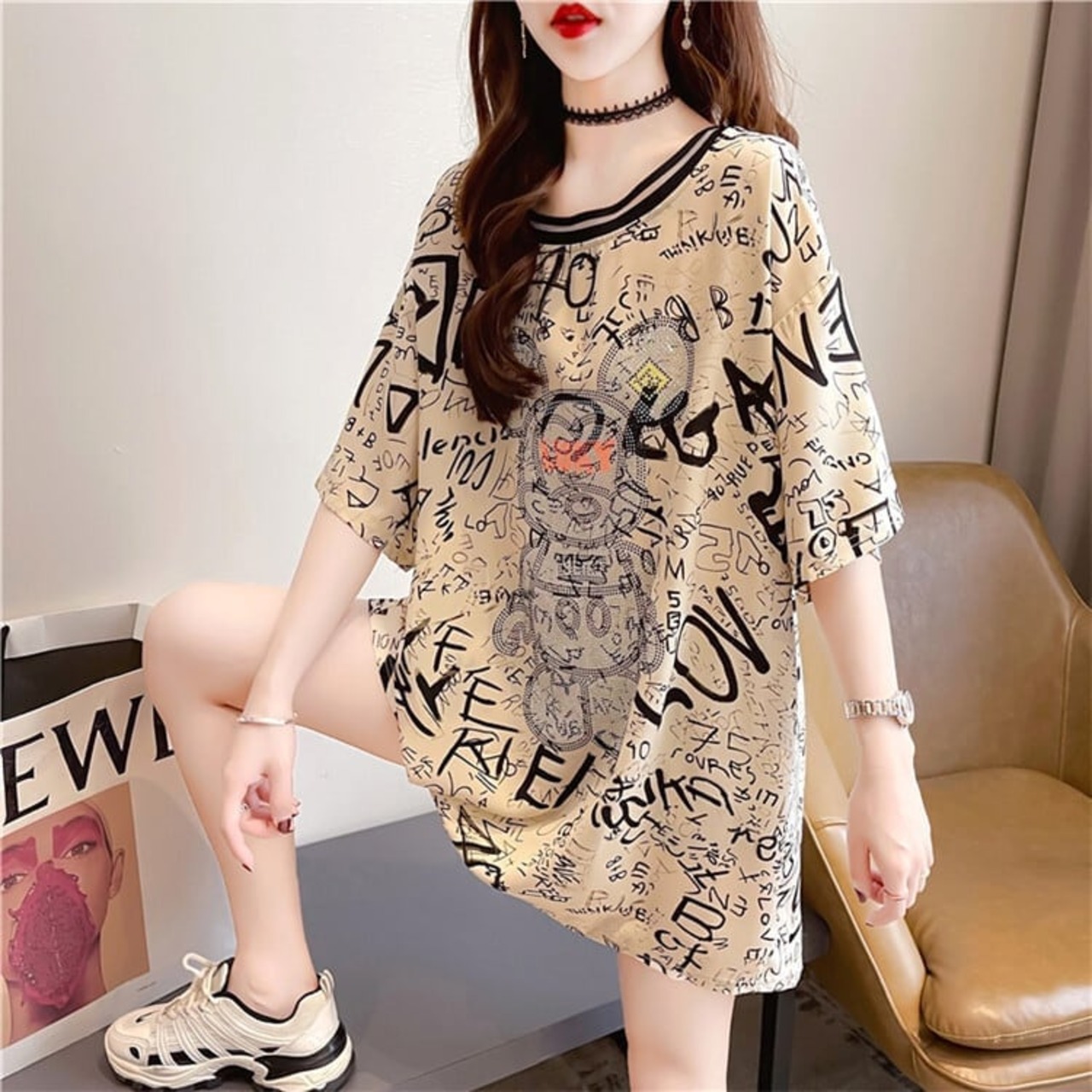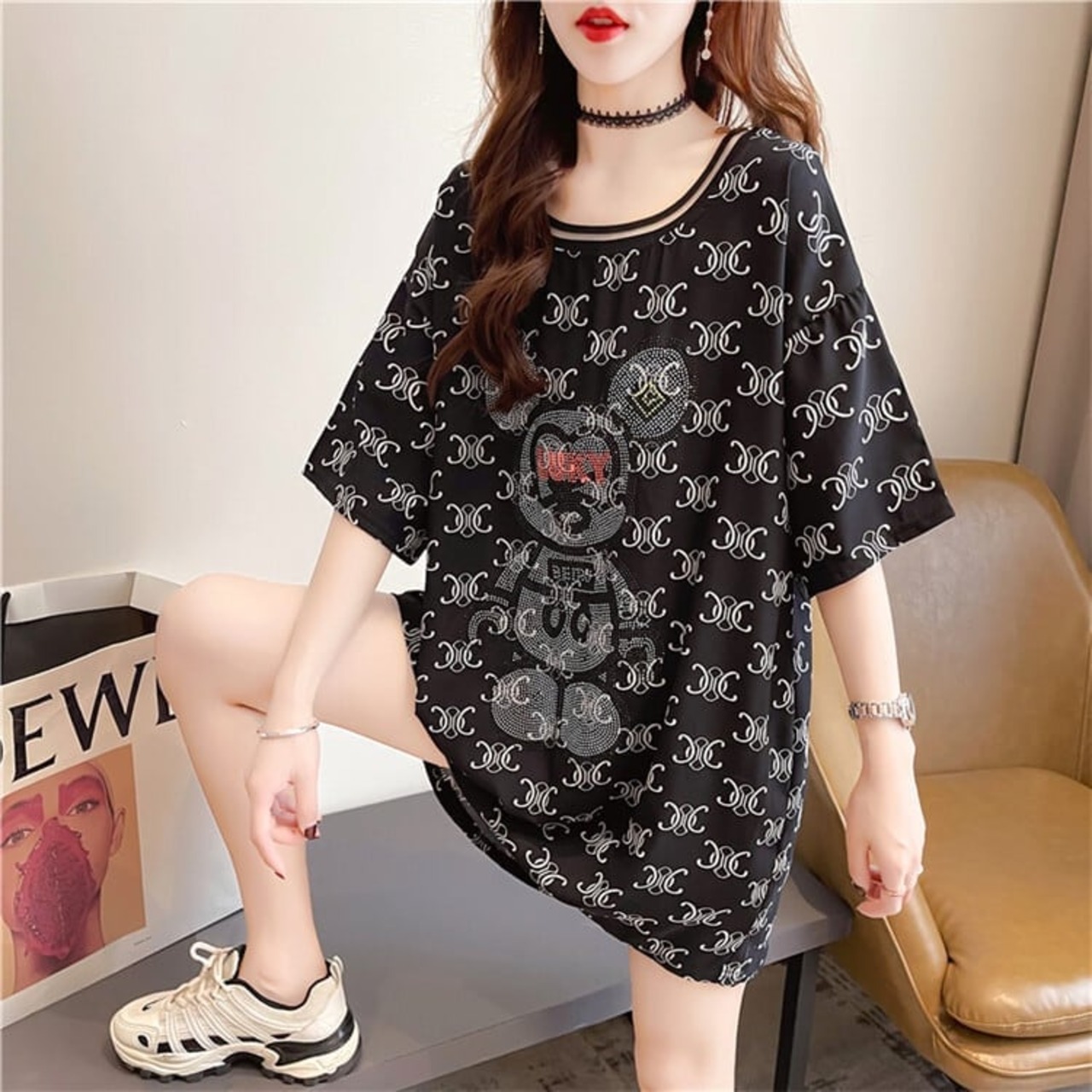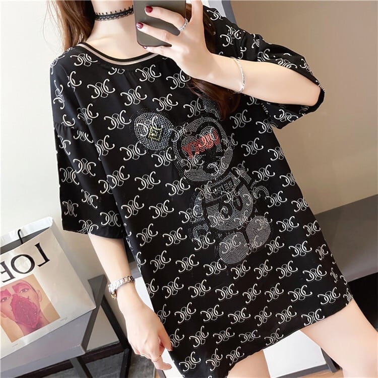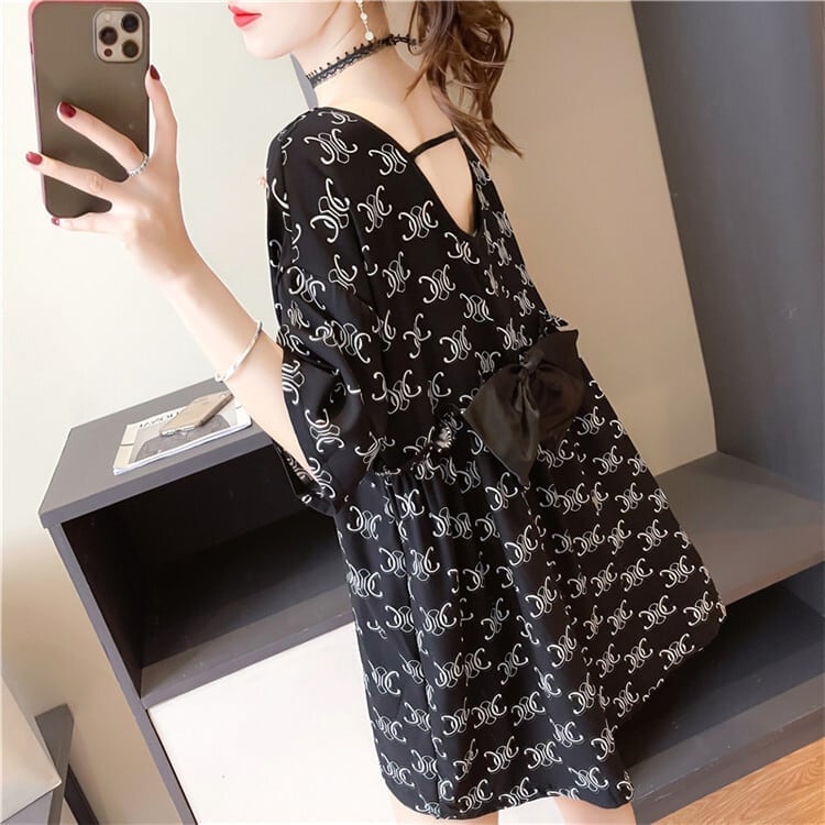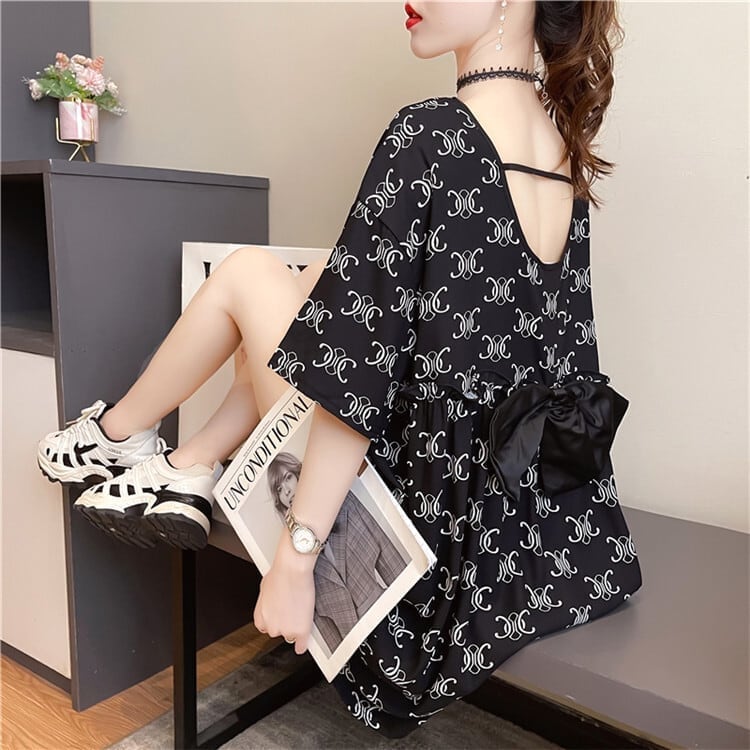 着?せ 立体のリボン バックオープン ロング Tシャツ ゆったり半袖 <S-2920>