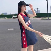 キュートでハンサムなスポーツスタイルのベストドレスバスケットボールユニフォームルーズミッドレングスノースリーブTシャツトップ <S-2853>