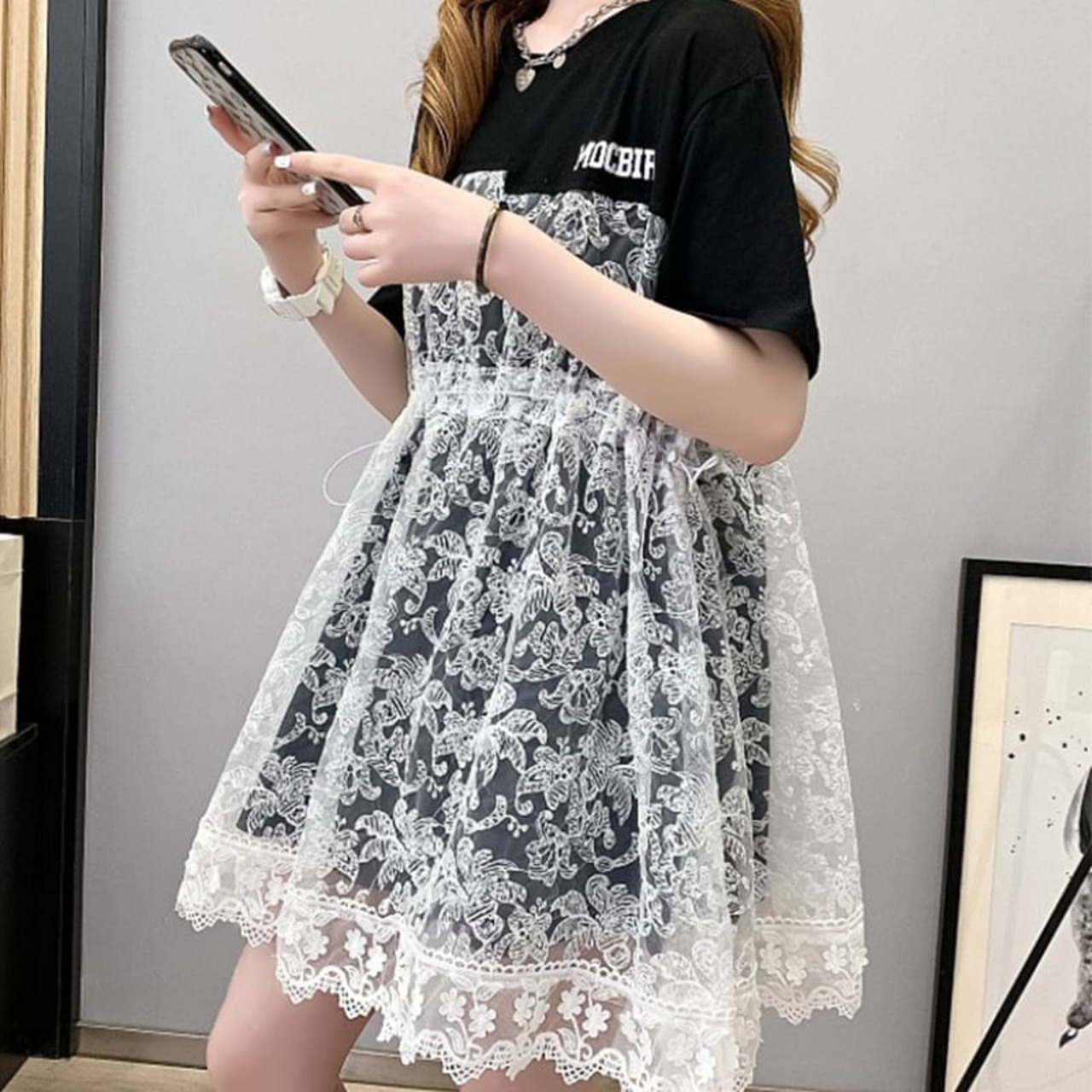 美人度アップ 切り替え ファッション ラウンドネック ワンピース<S-3192>
