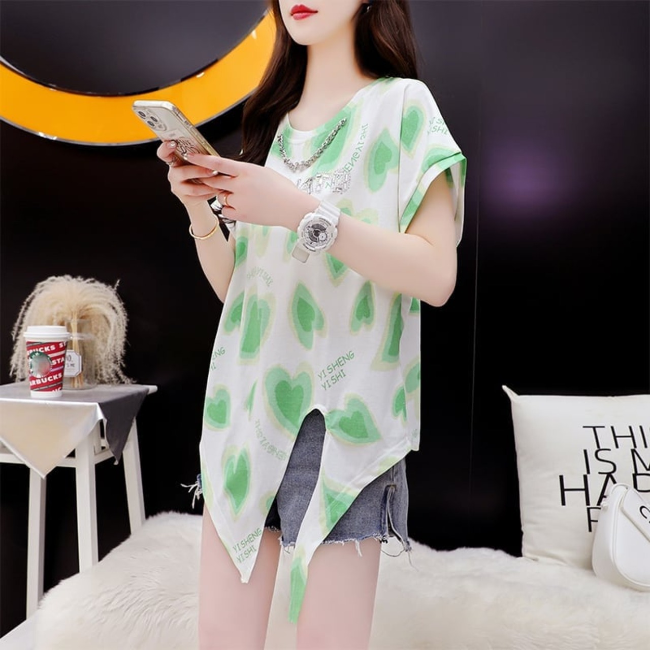 フリー 胸囲110 着丈77/58 袖丈26 肩幅55