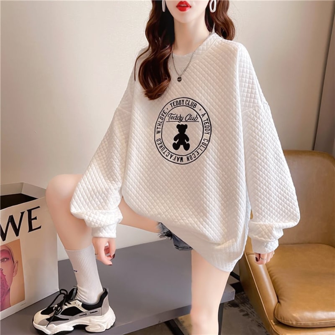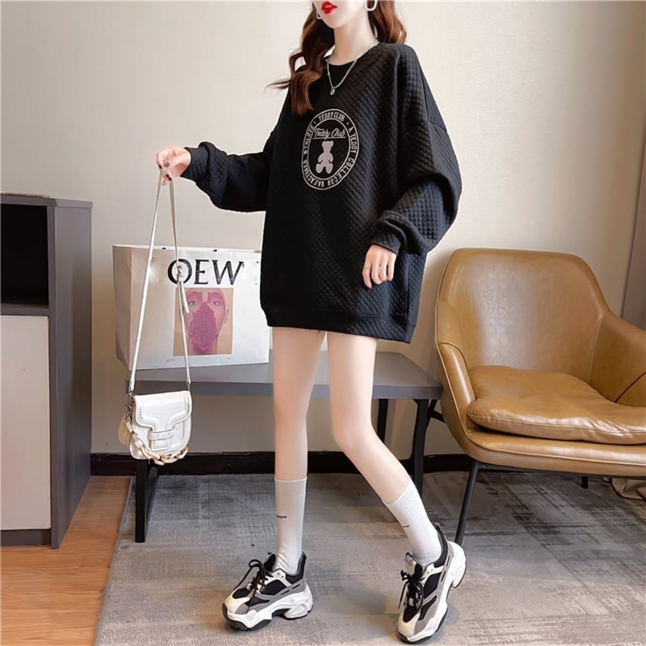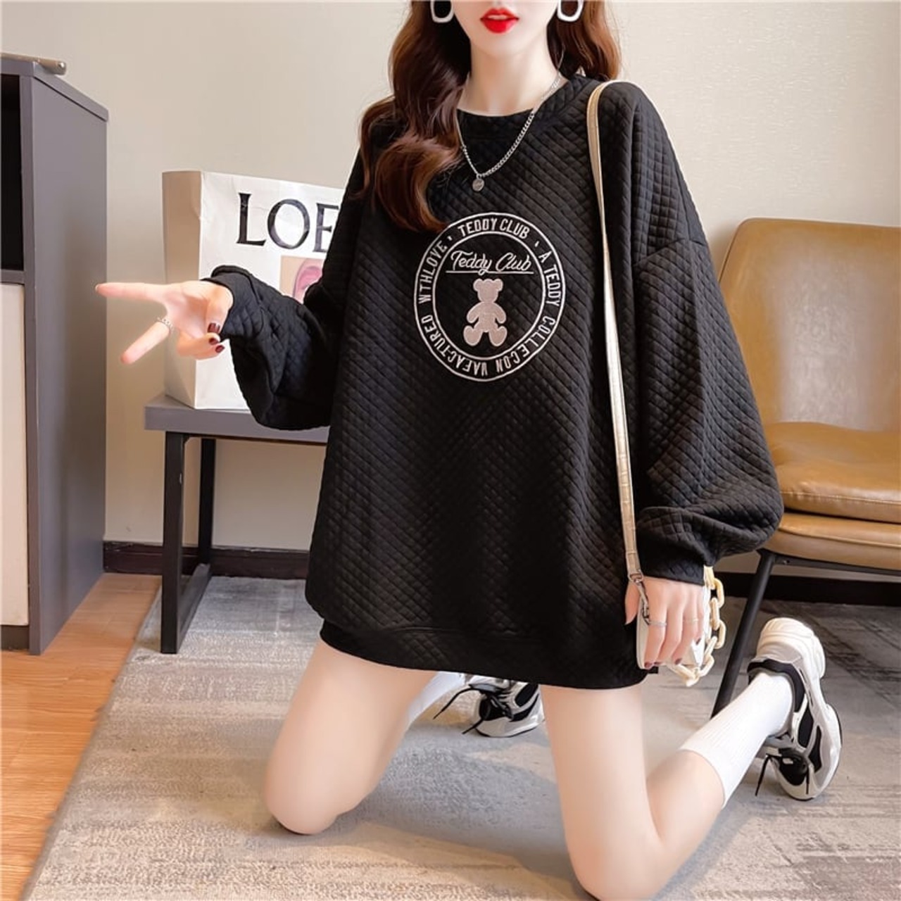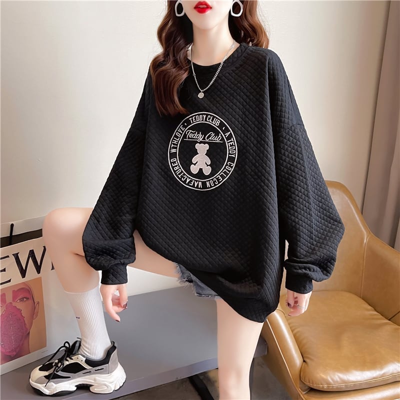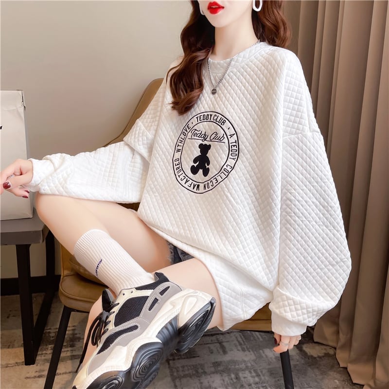 ルーズ デザイン感 着?せ 長袖 スウェット パーカー トップス<S-2159>