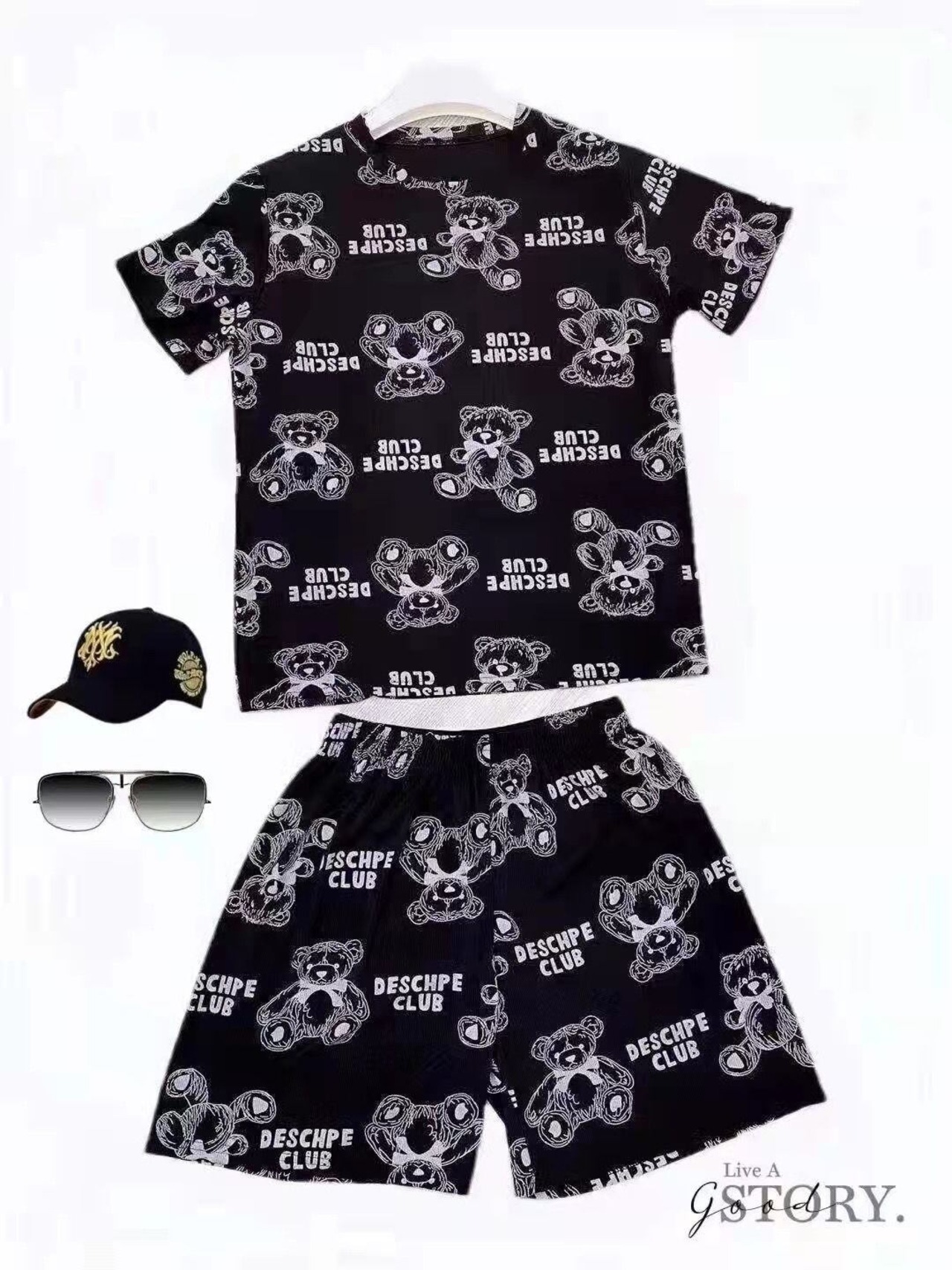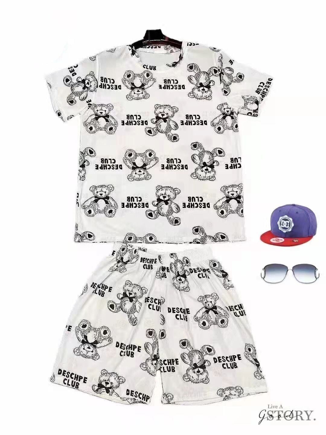 L 胸囲108 着丈68 袖丈21 肩幅51 パンツの長さ49 ヒップ110