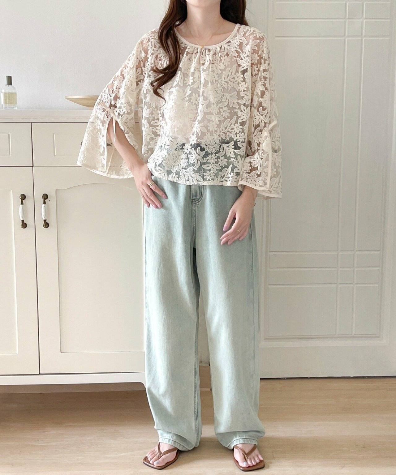 フリーサイズ 胸囲114 着丈72 袖丈19 肩幅54