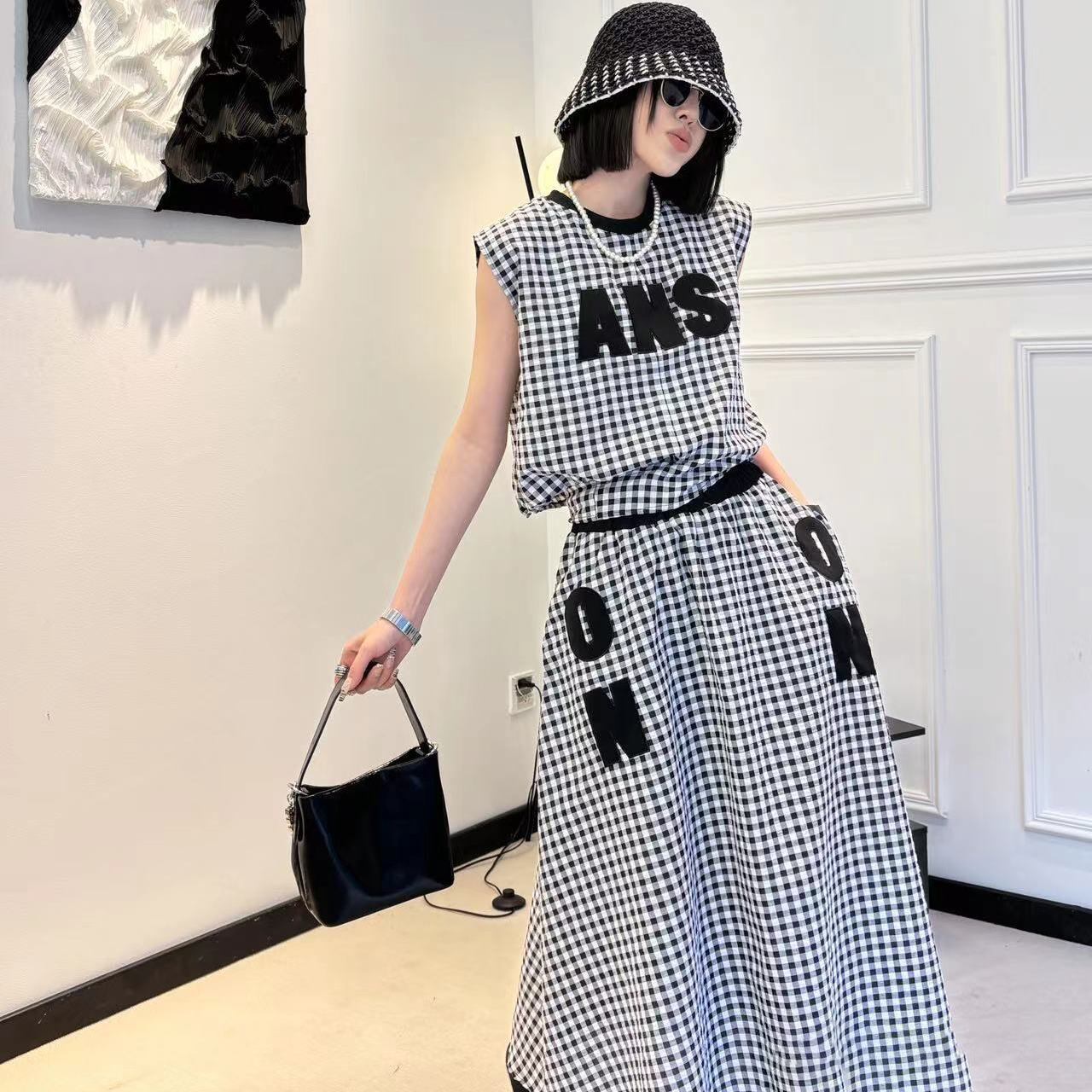 超人気 シンプル カジュアル チェック柄 ワンピース<S-8790>