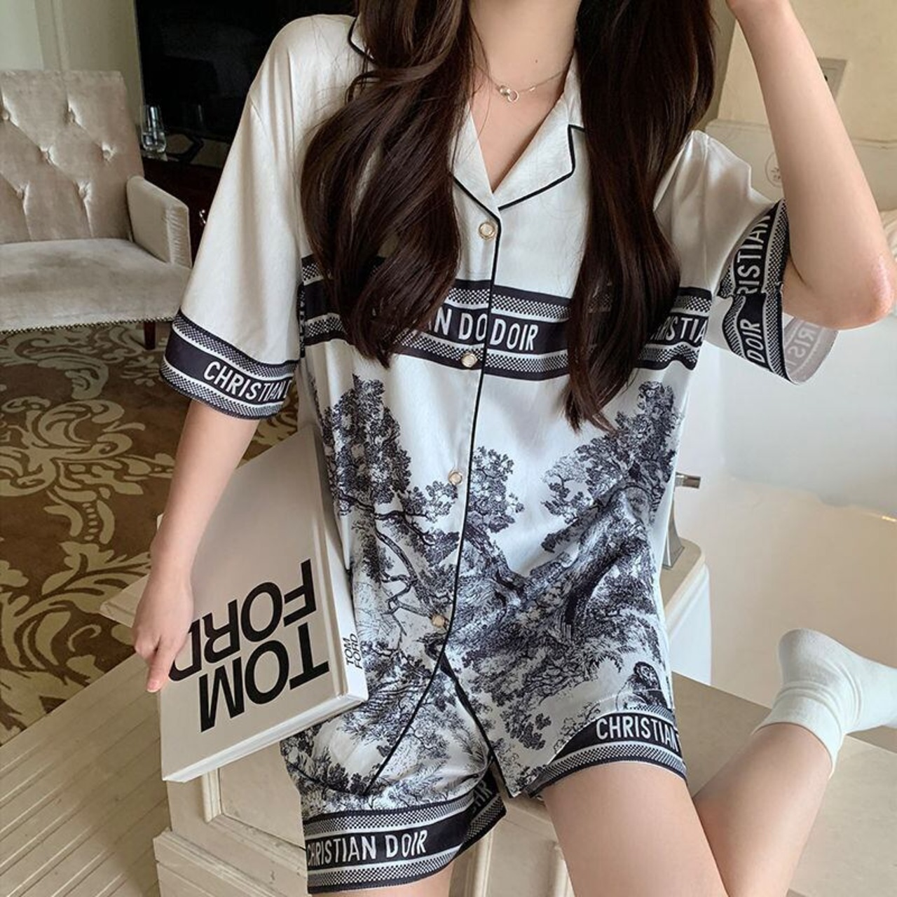L 胸囲104 着丈67 袖丈27 肩幅48 ズボンの長さ45 ヒップ112