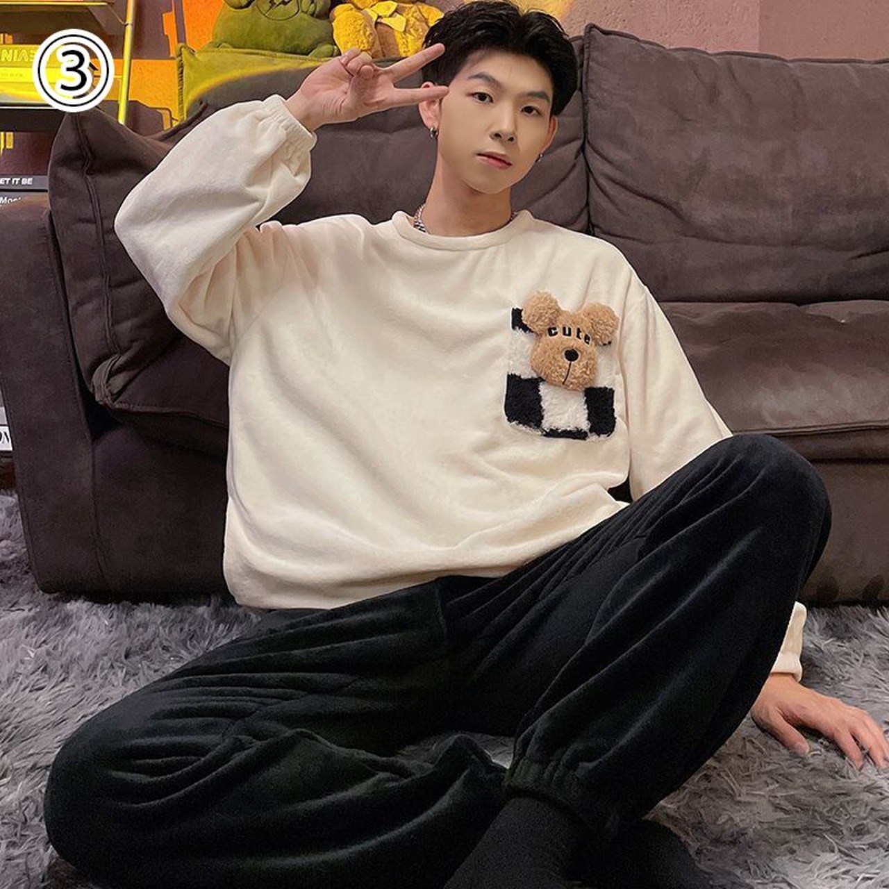 L 胸囲104 着丈69 袖丈59 肩幅44 ズボン丈99 ヒップ106