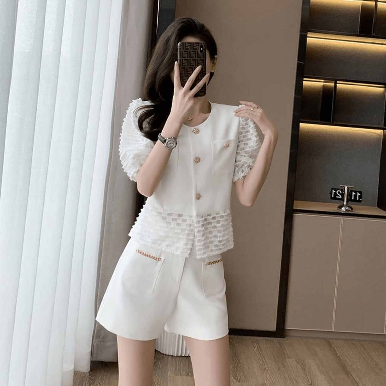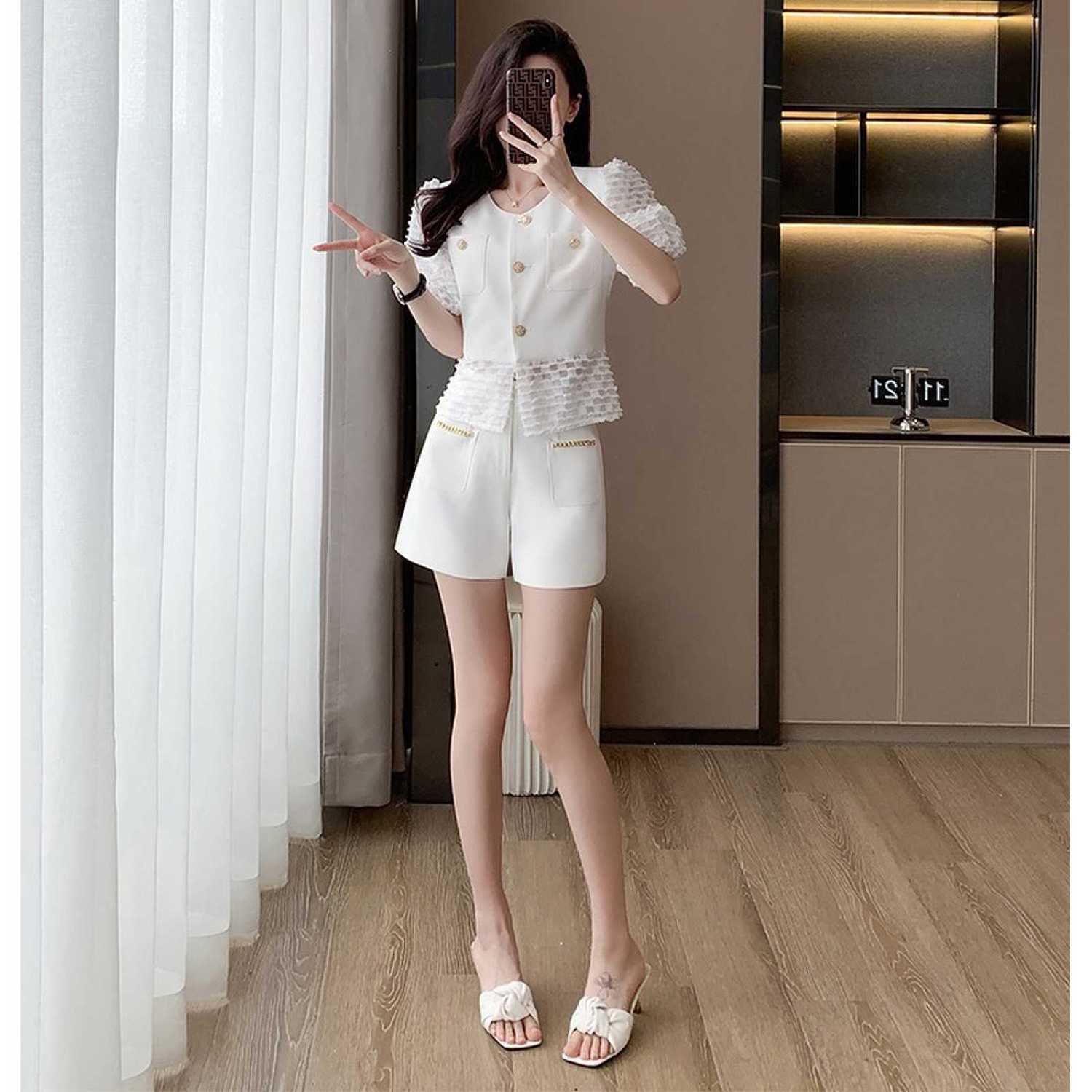 L 胸囲106 着丈57 袖丈29 肩幅38 パンツの長さ41 ウエスト102