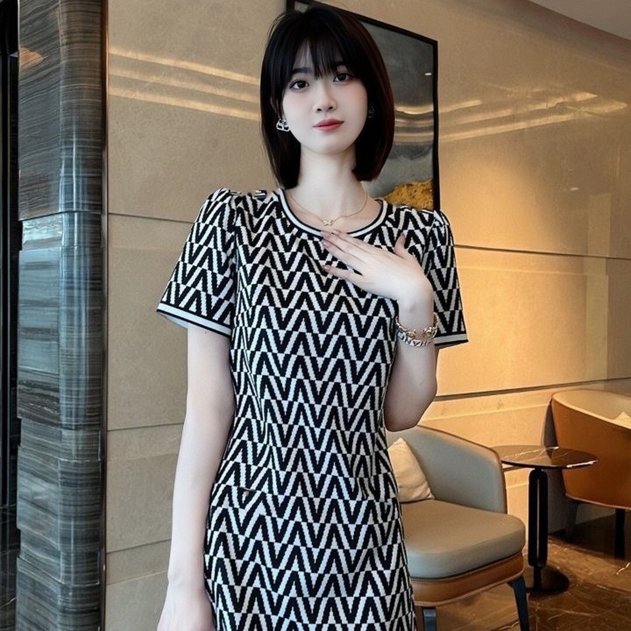 期間限定 エレガント カジュアル ストライプ柄 2色選択可 ワンピース<S-8875>