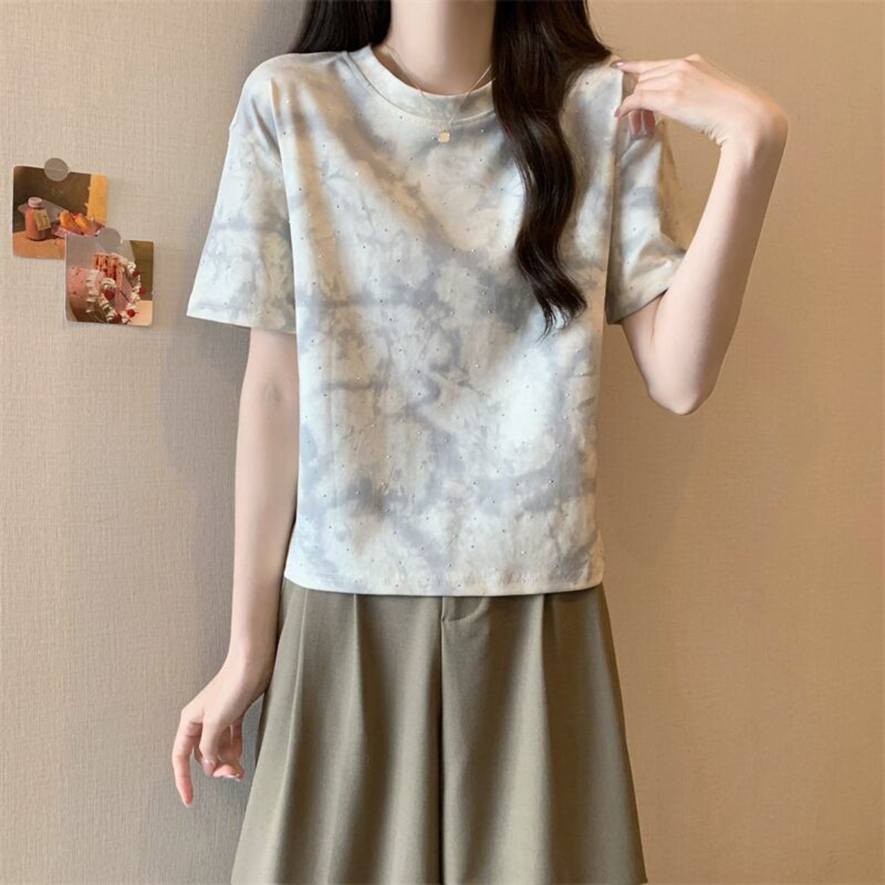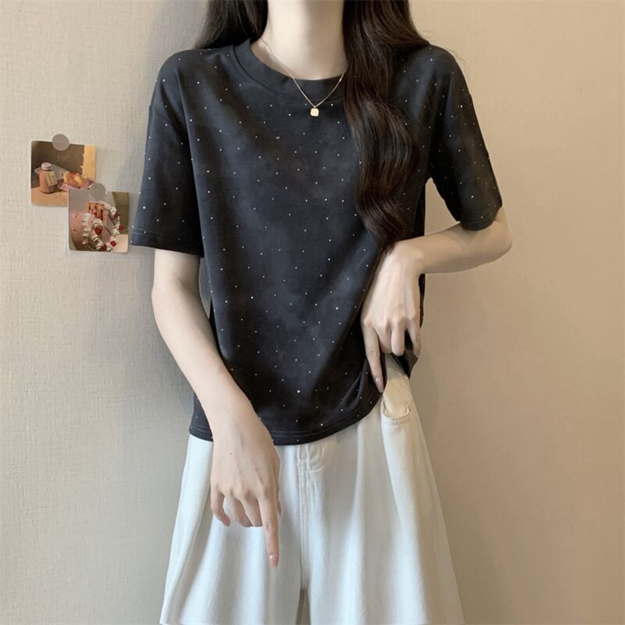 L バスト96 着丈55 袖丈20 肩幅43