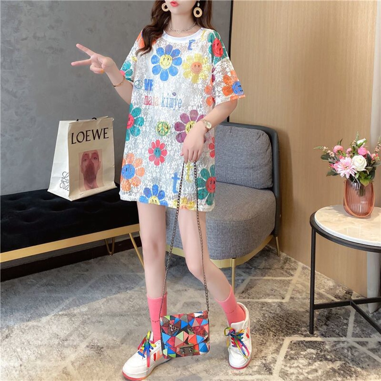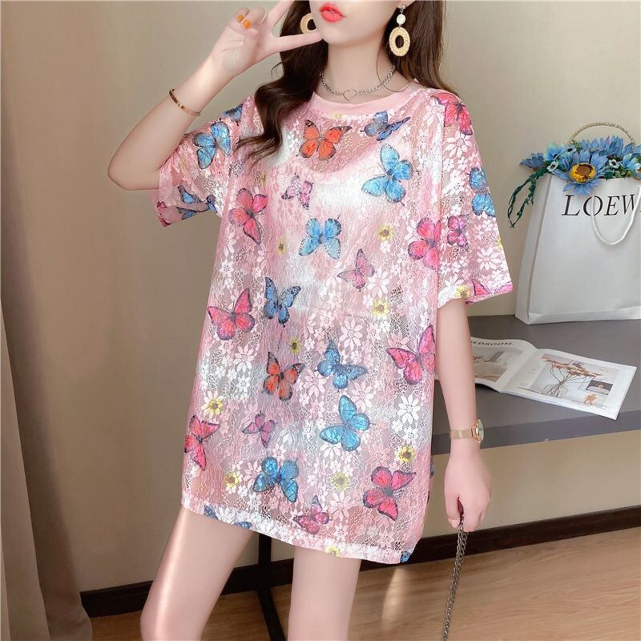超人気 スウィート ファッション ルーズ 半袖シャツ<S-6664>