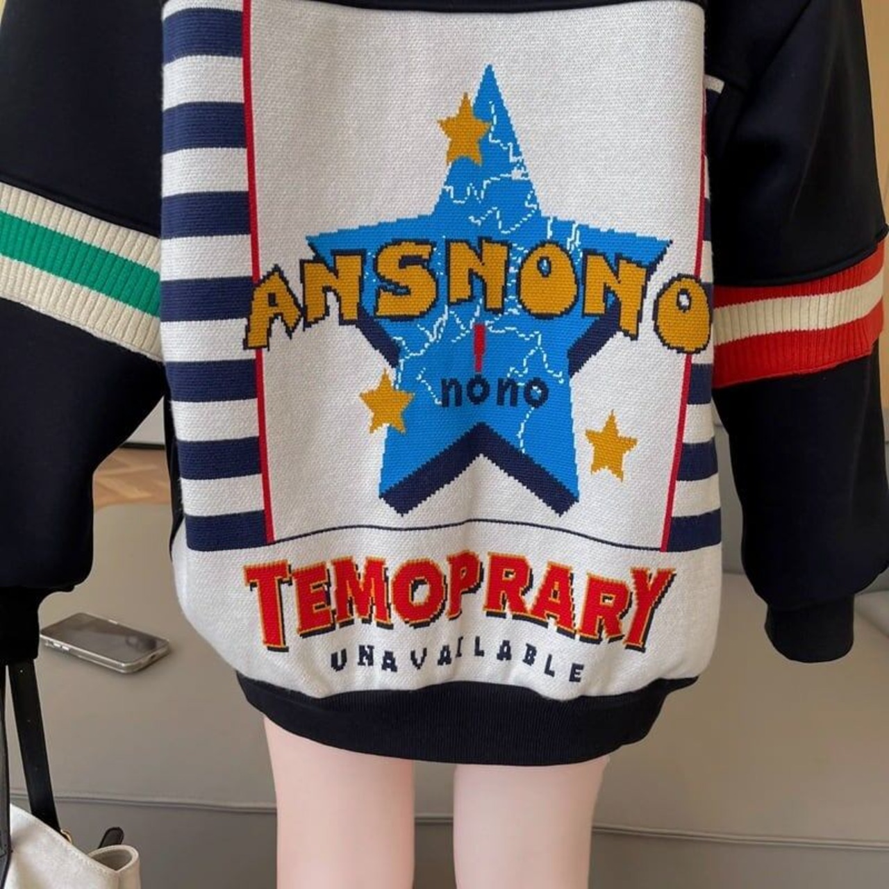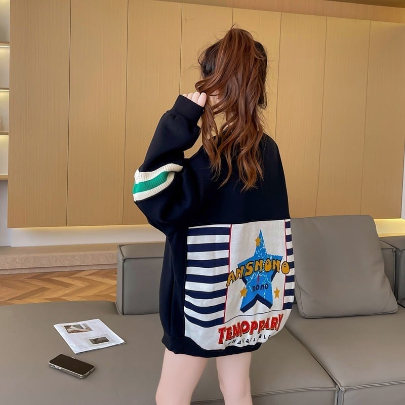 着せ 切り替えブラック 星柄グラフィックロゴ スウェット<S-4373>