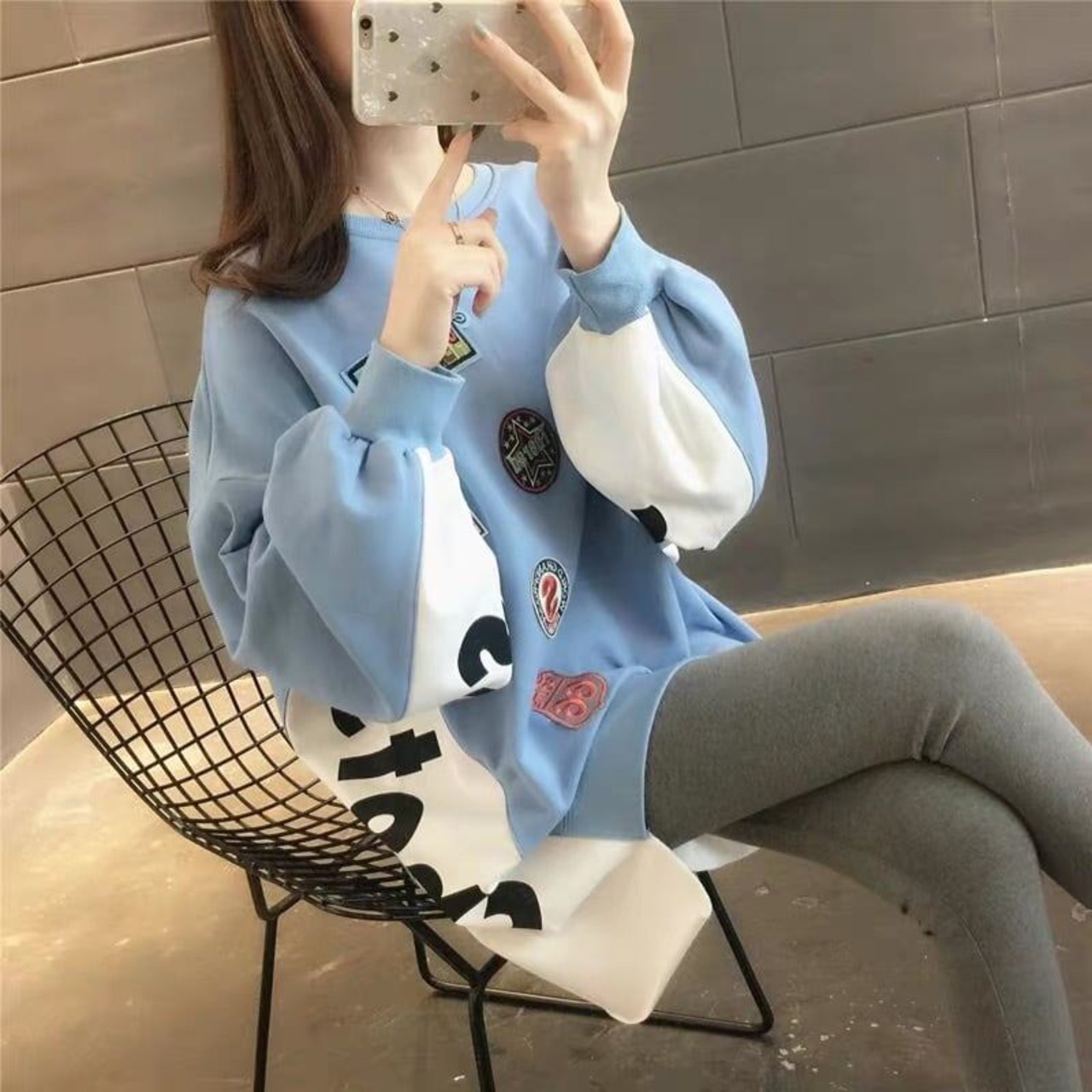 合わせやすいゆったり切り替えロゴ全3色トップス<S-4515>