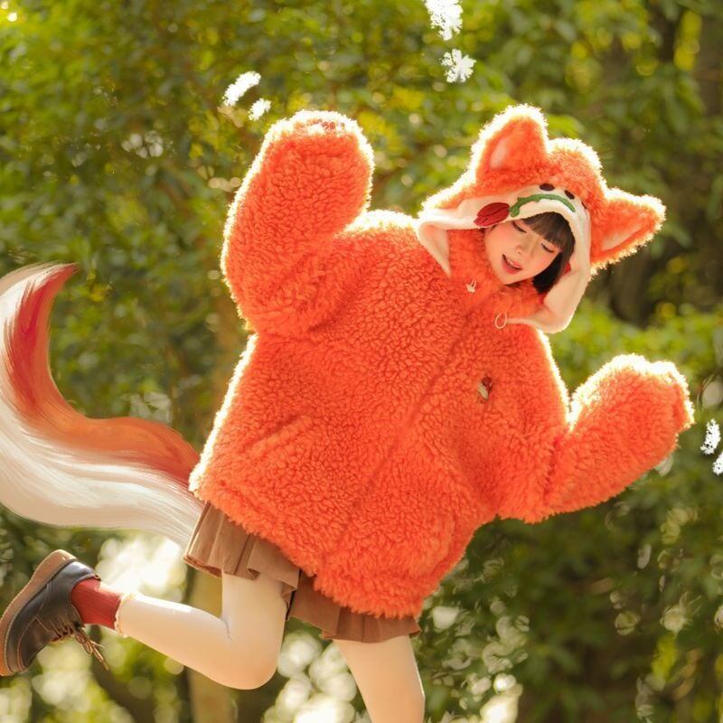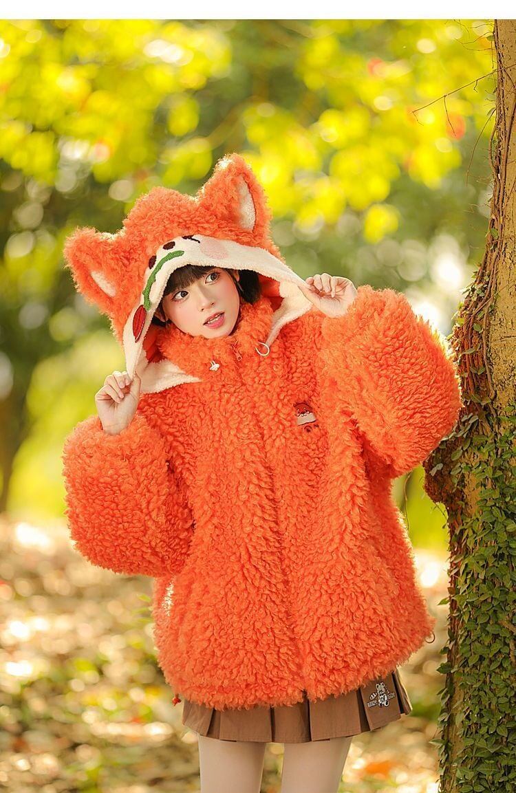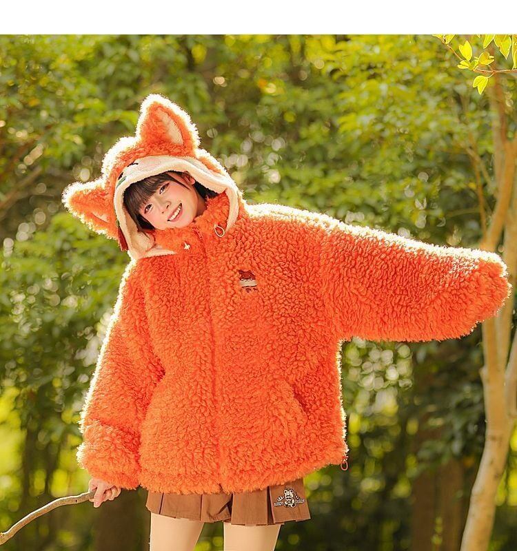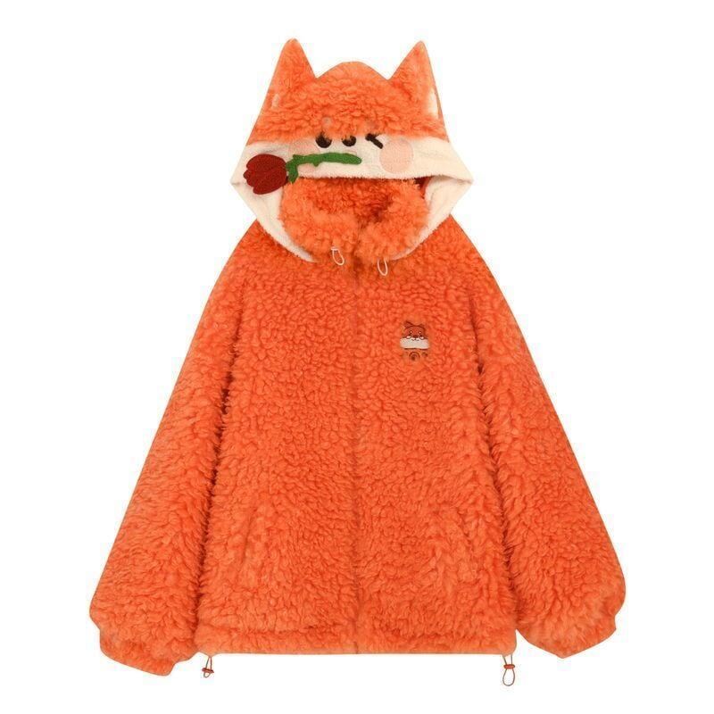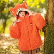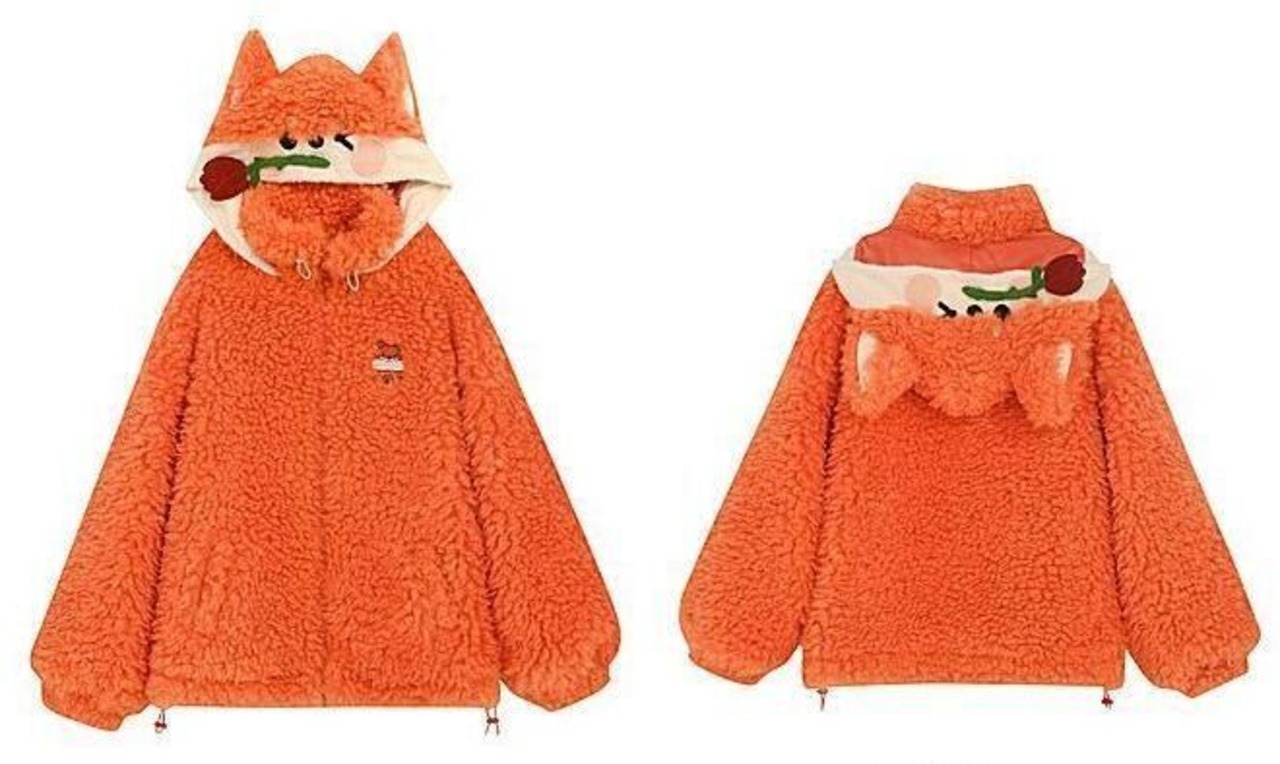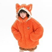 カワイイキツネロゴもこもこボアフルジップパーカ