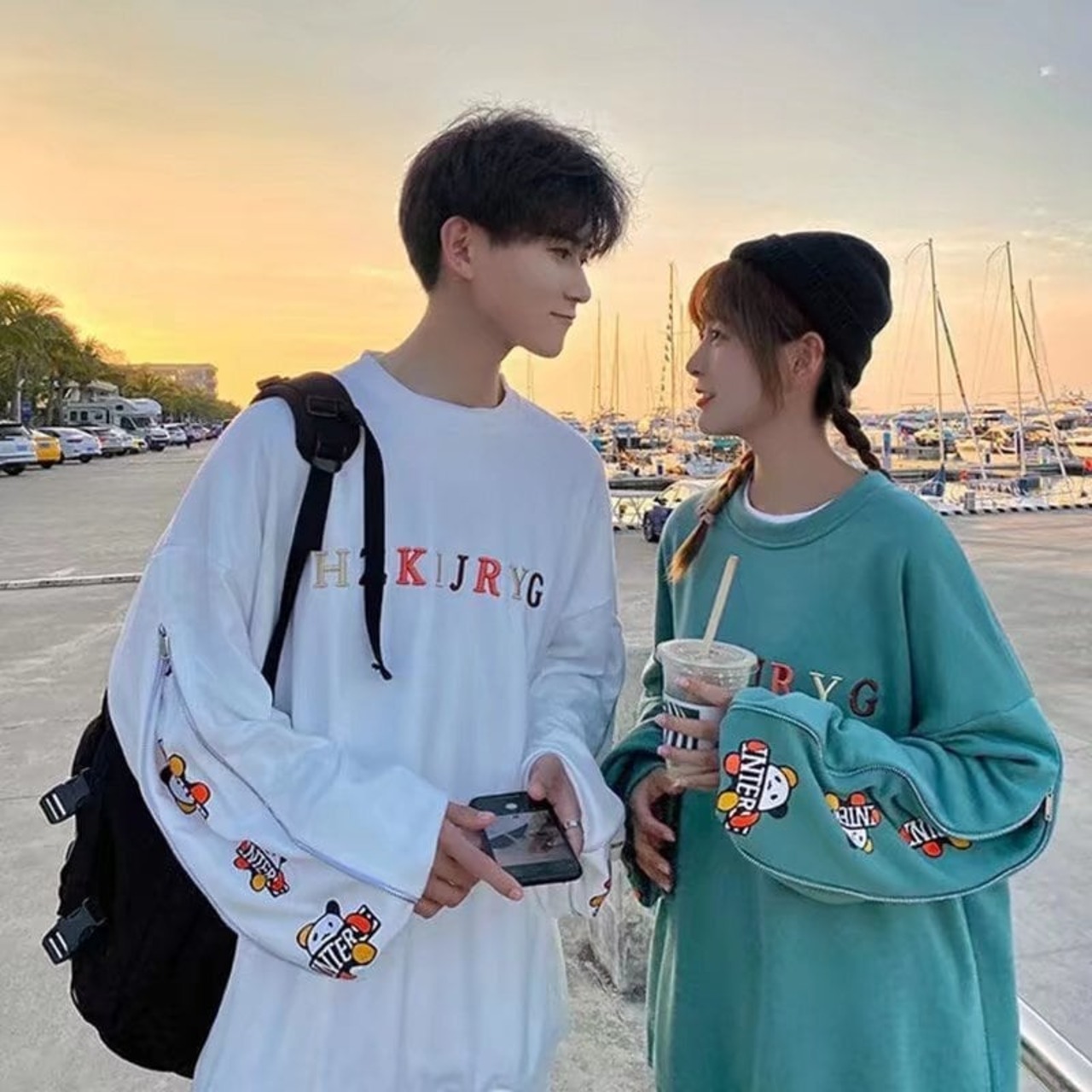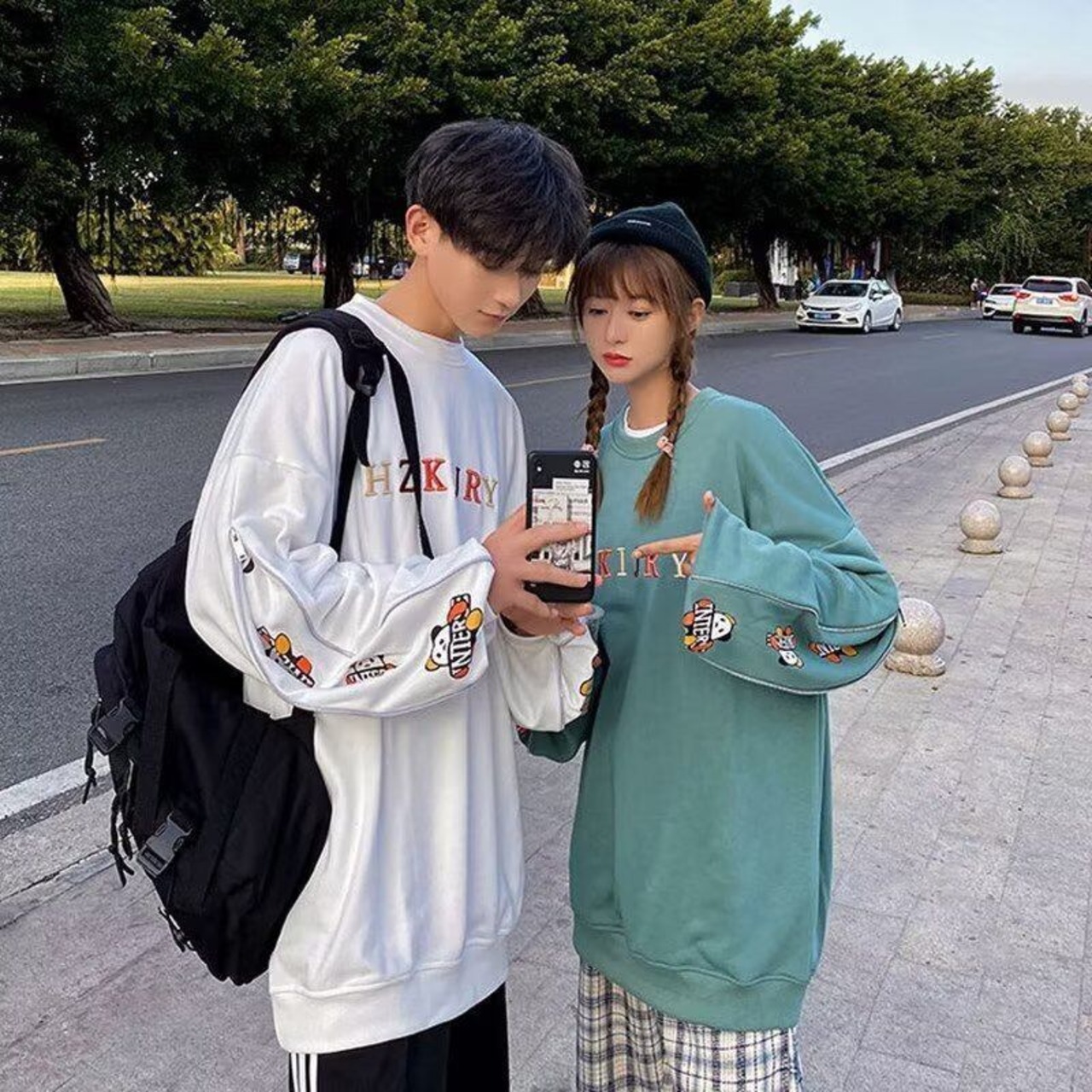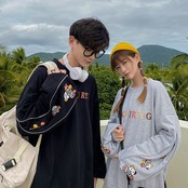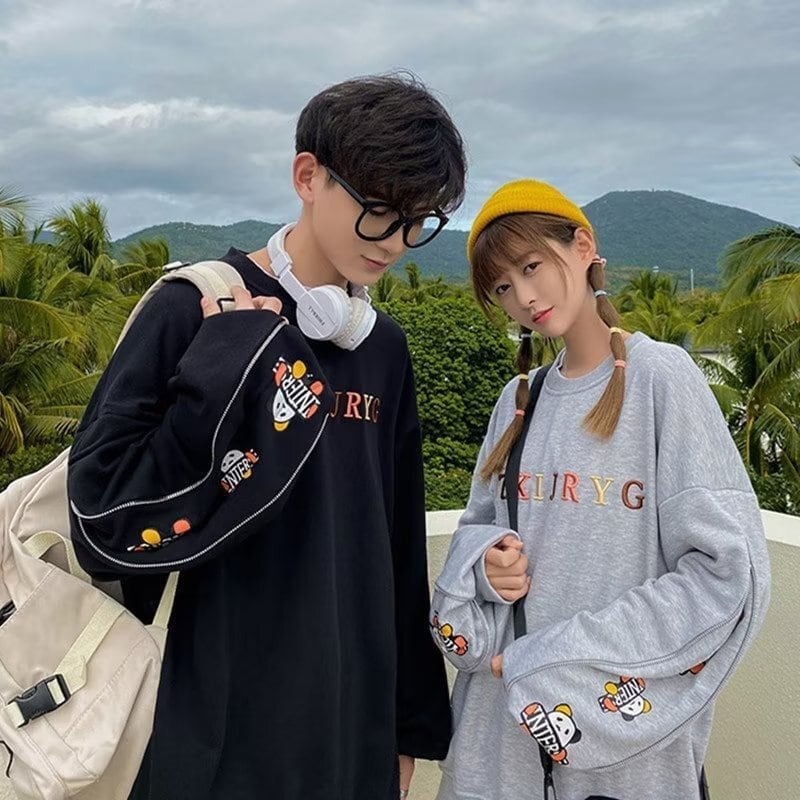 おすすめ熊柄 刺ロゴ ユニセックスゆったりスウェット全4色<S -4657>