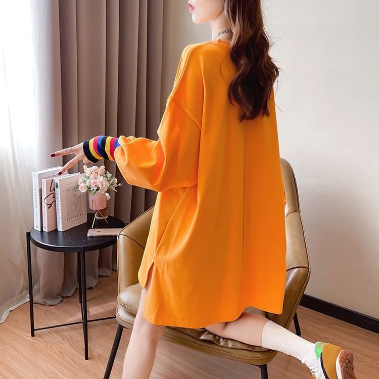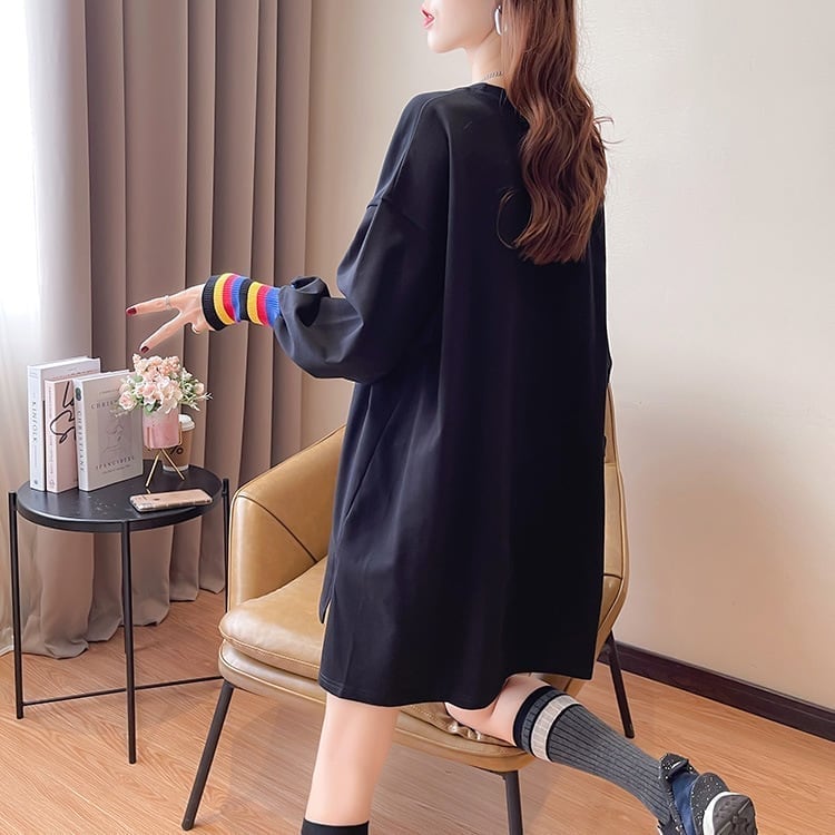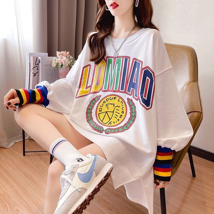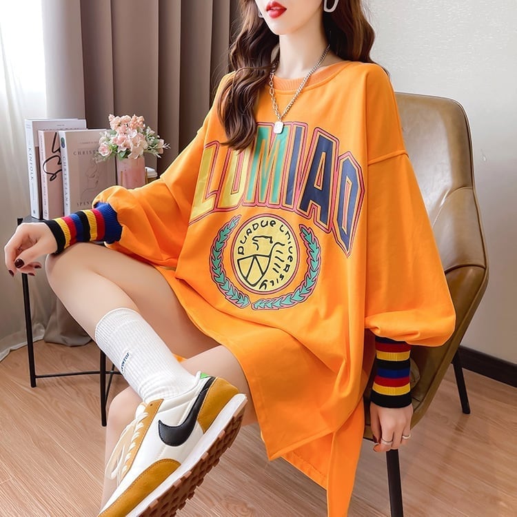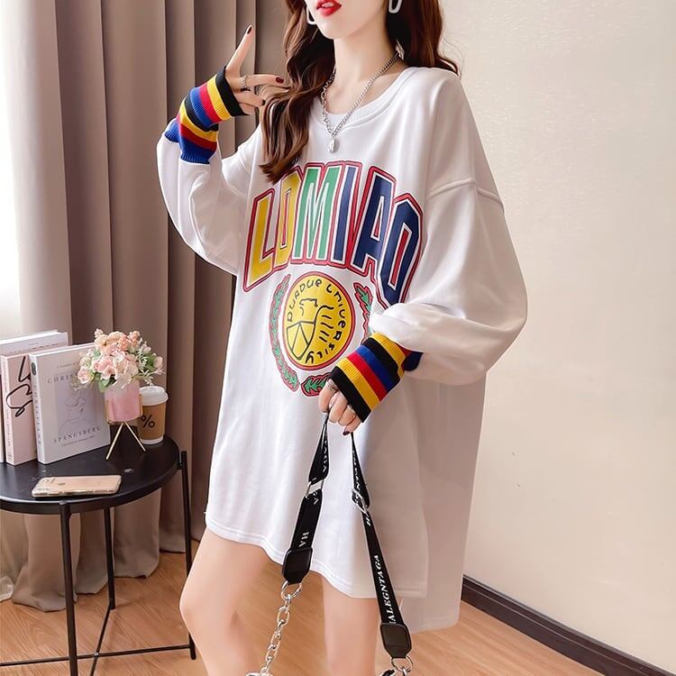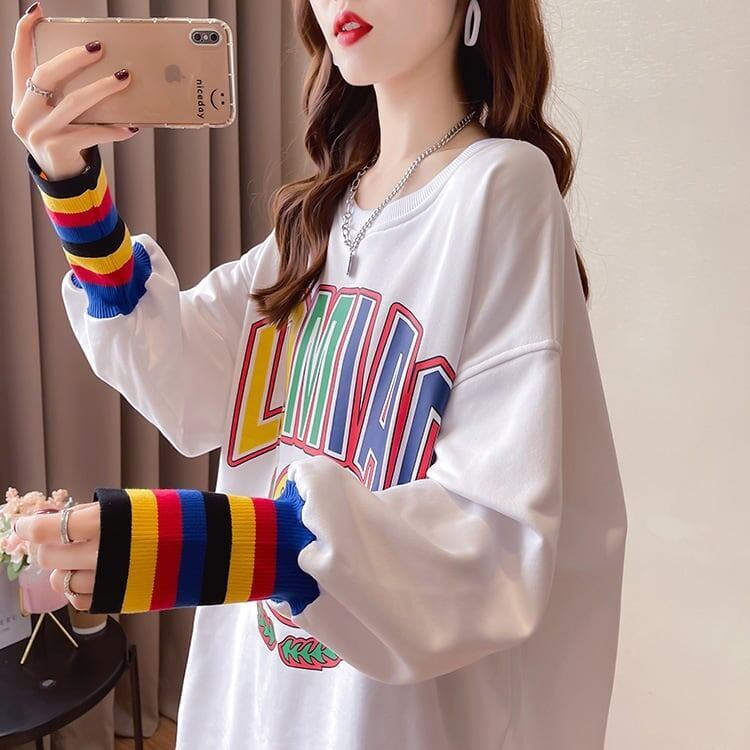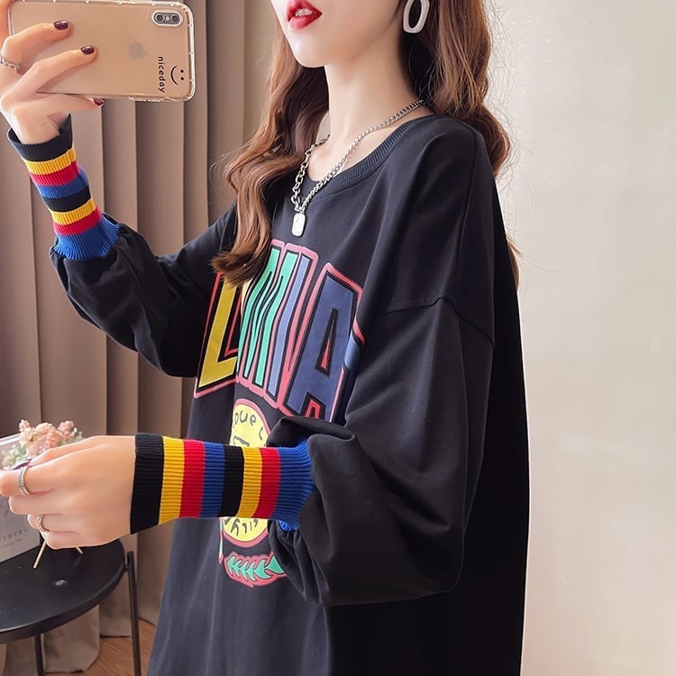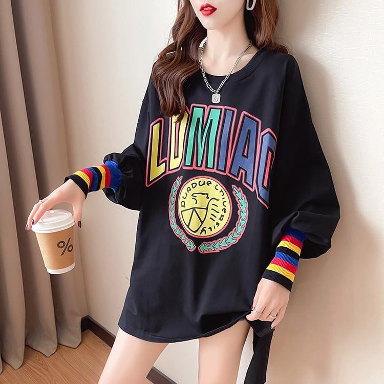 着せ グラフィックプリント 虹色 ロング長袖Tシャツ 三色トップス<S-4107>