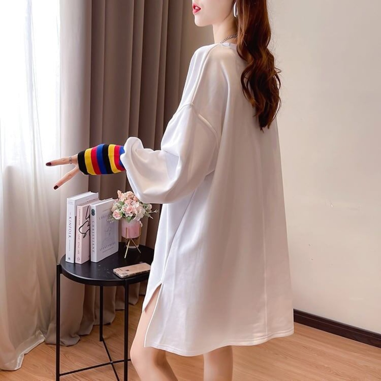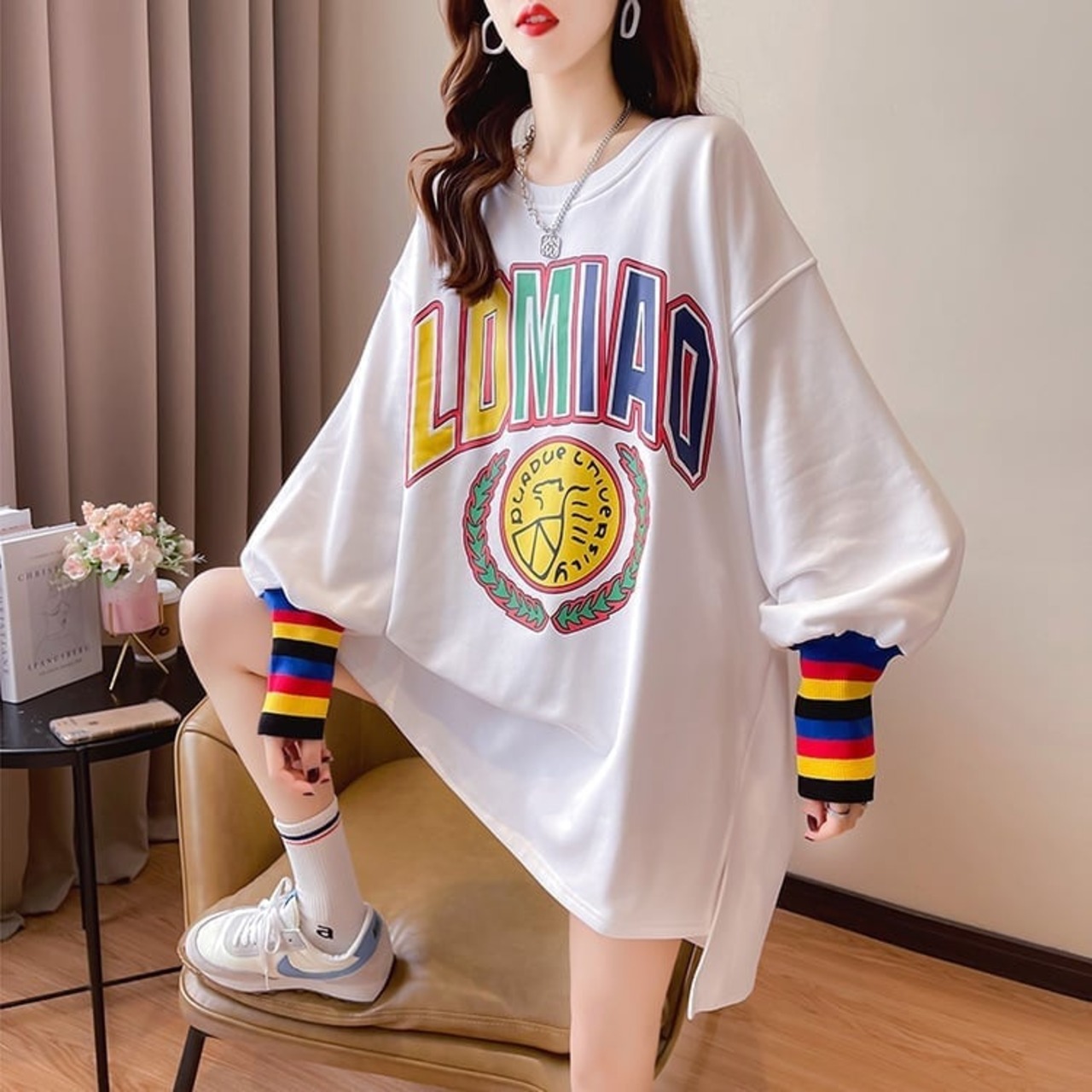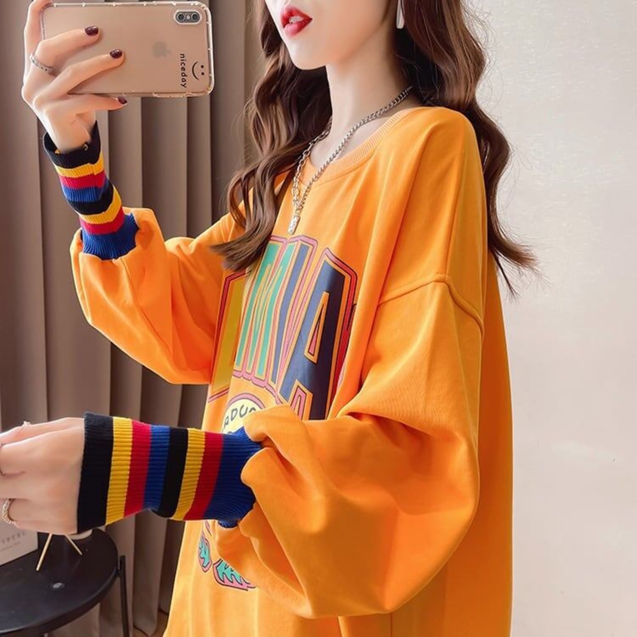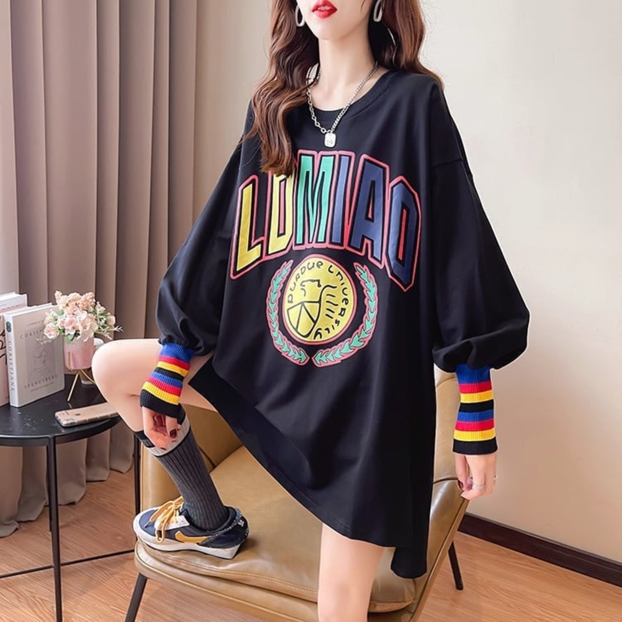 着せ グラフィックプリント 虹色 ロング長袖Tシャツ 三色トップス<S-4107>