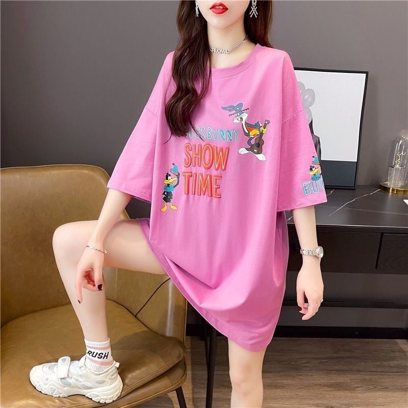 着せ プリント アルファベット ロングTシャツ 四色 ゆったりワンピース <S-4018>