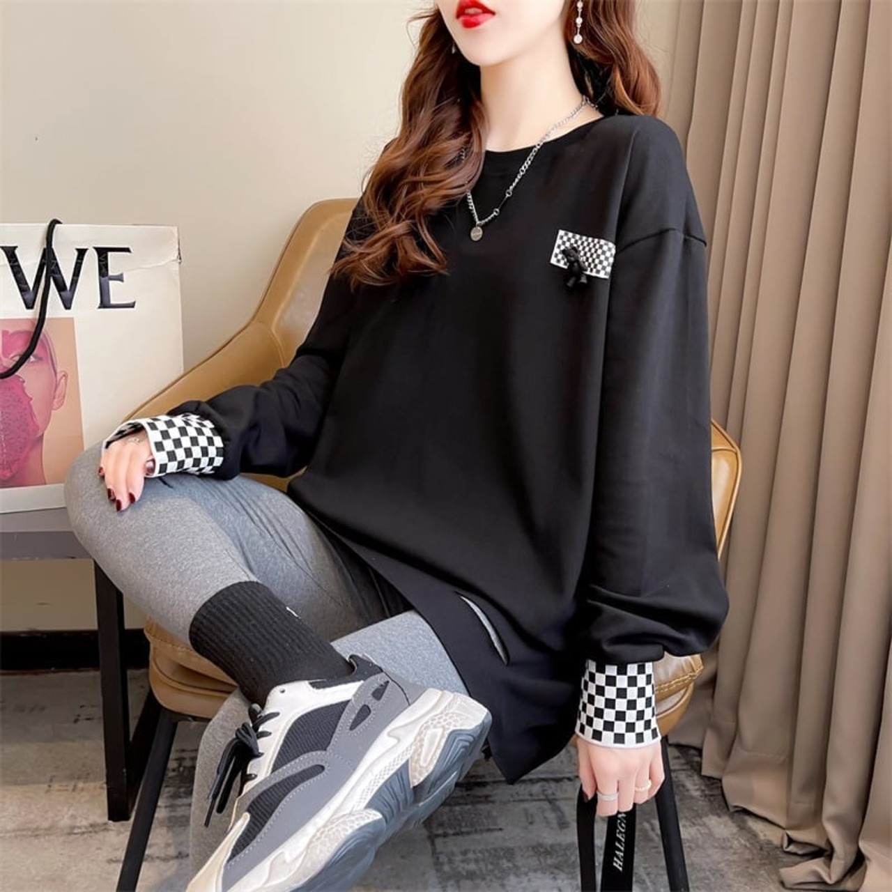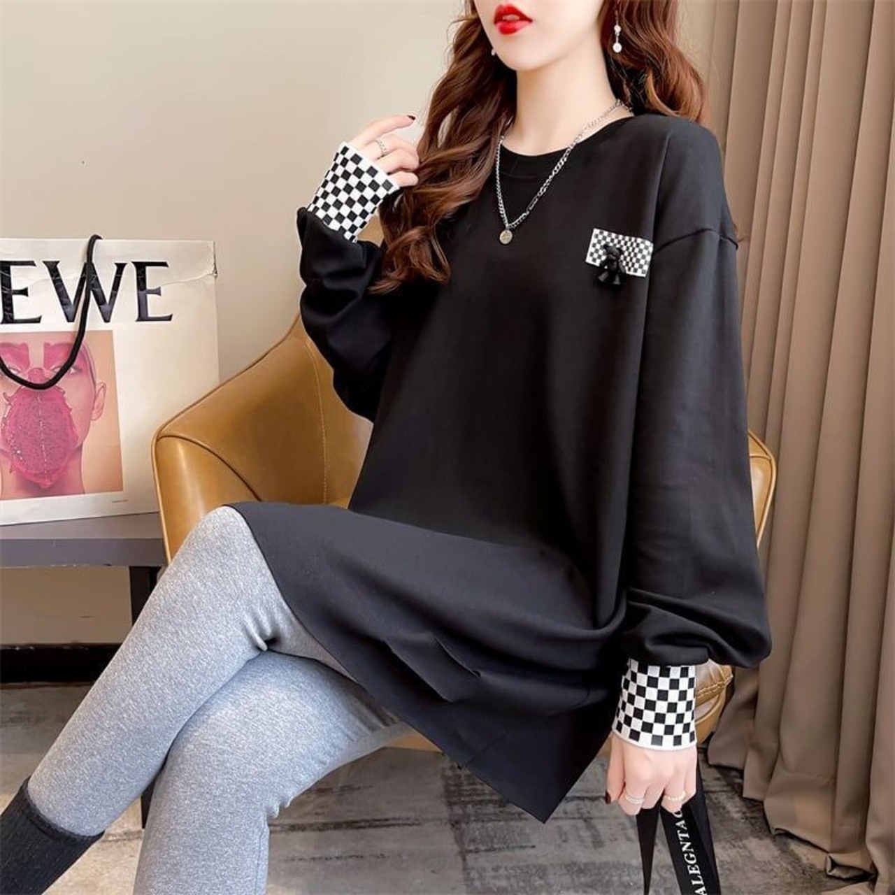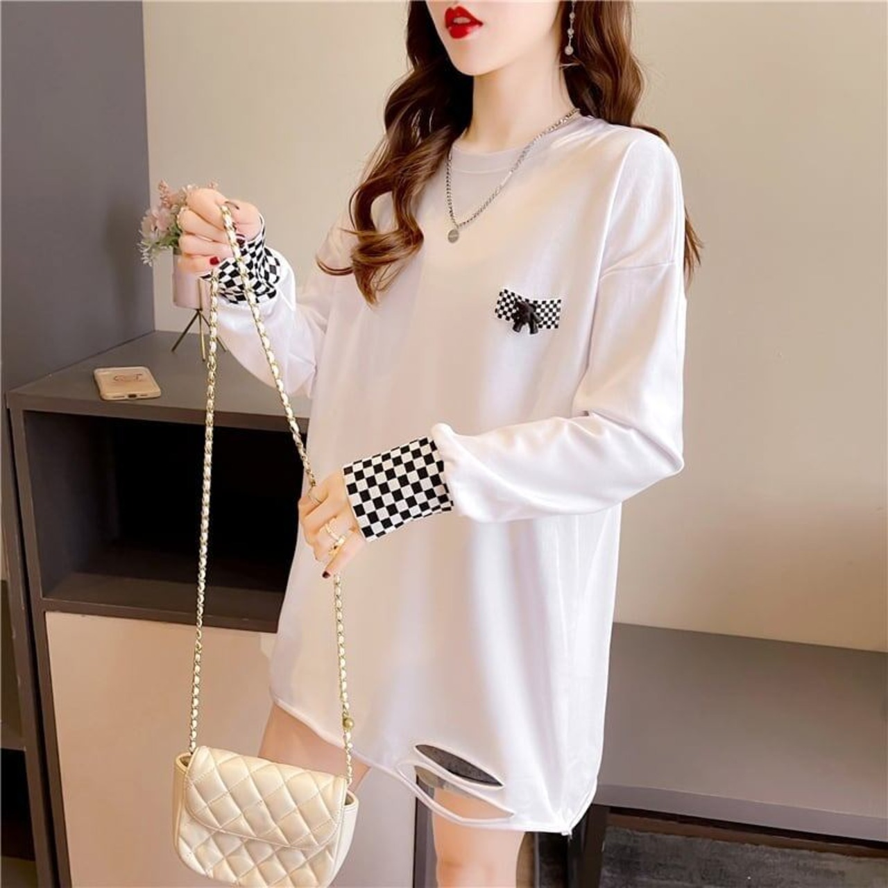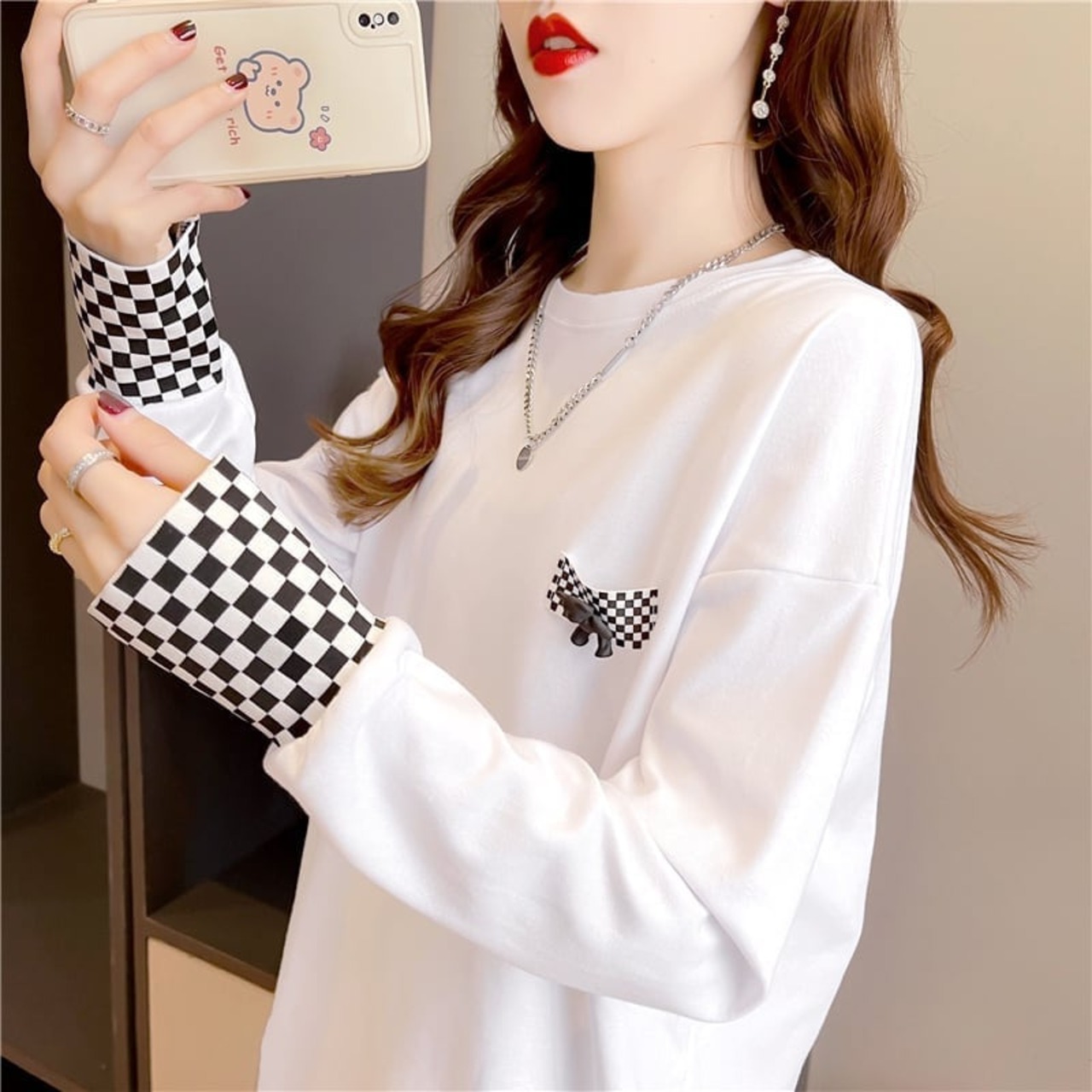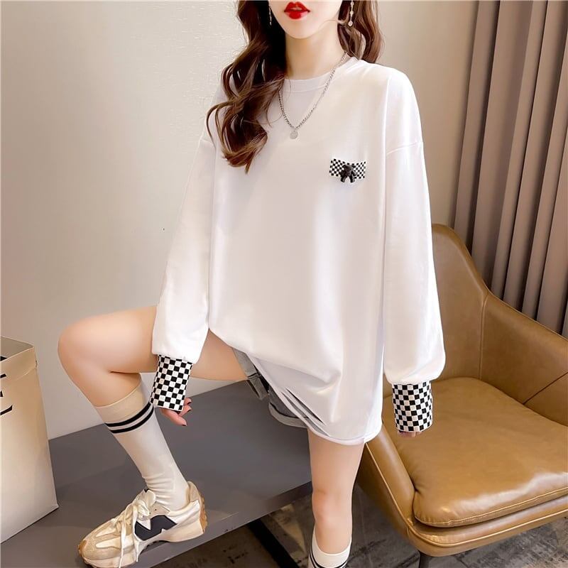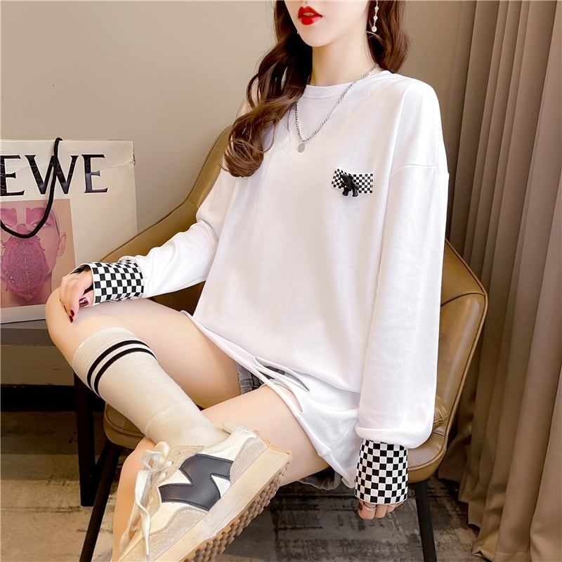 スタイリッシュ 切り替え 一目惚れ プリント Tシャツ カットソー<S-3675>