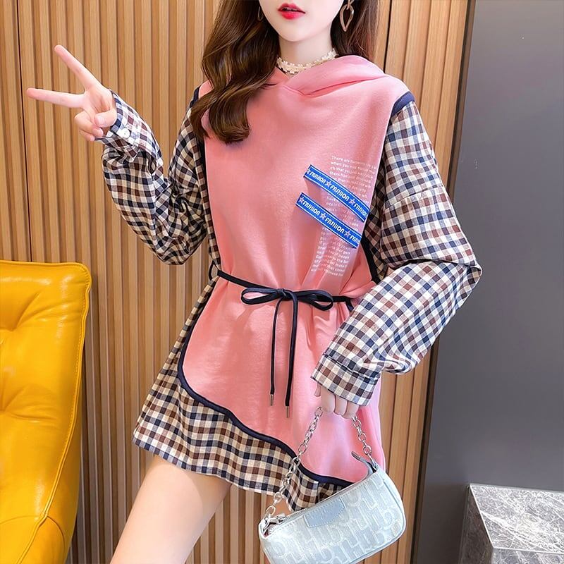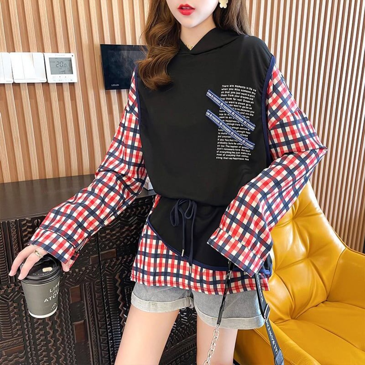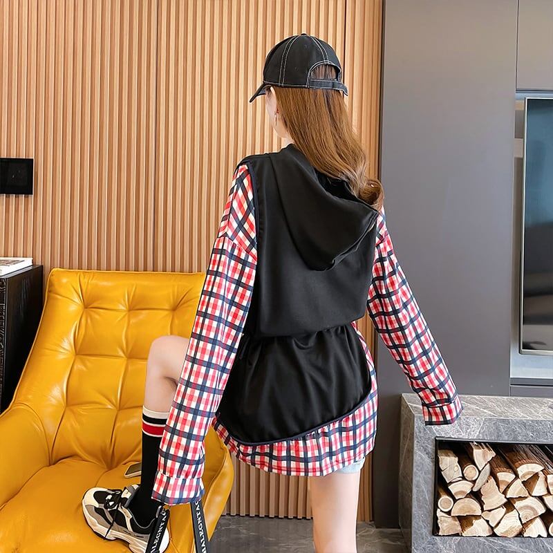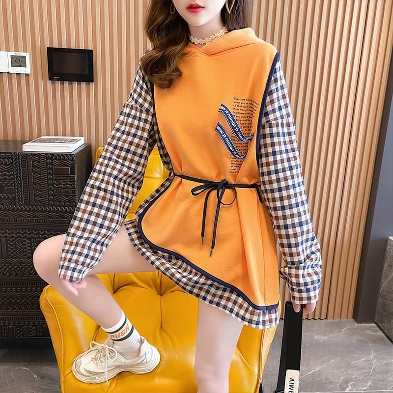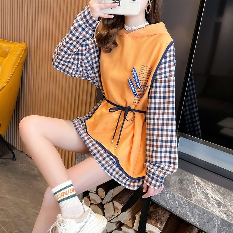 着せ デザイン感 合わせやすい チェック柄 スウェット パーカー<S-2989>