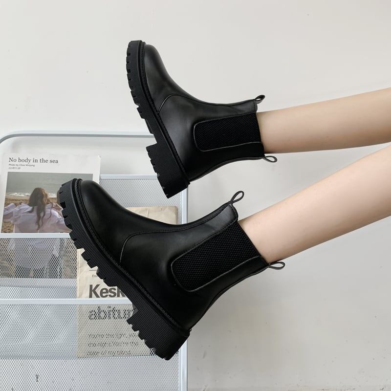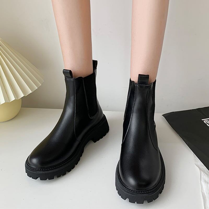 レトロ 無地 スタイリッシュ ラウンドトゥ マーティンブーツ<S-2913>