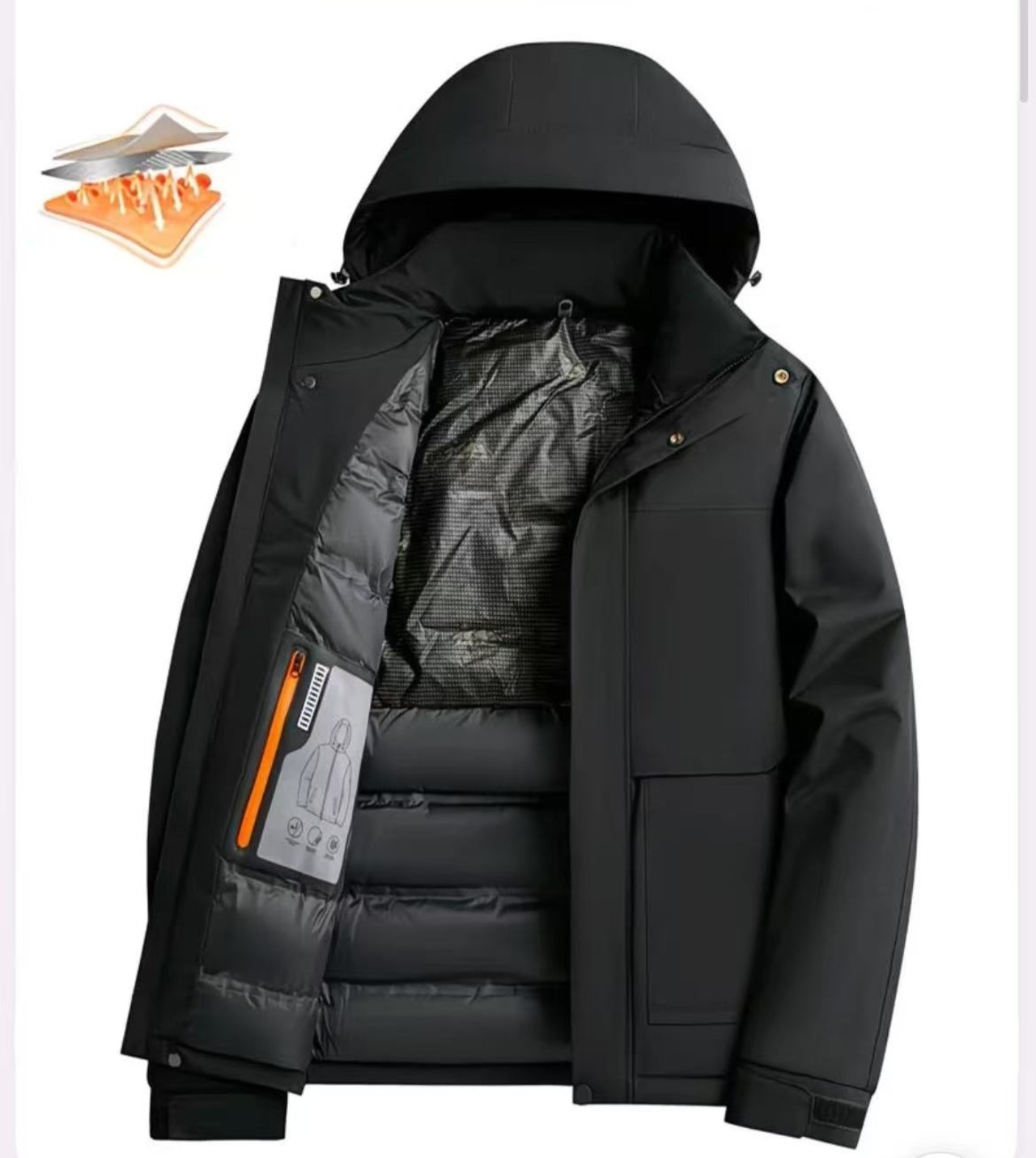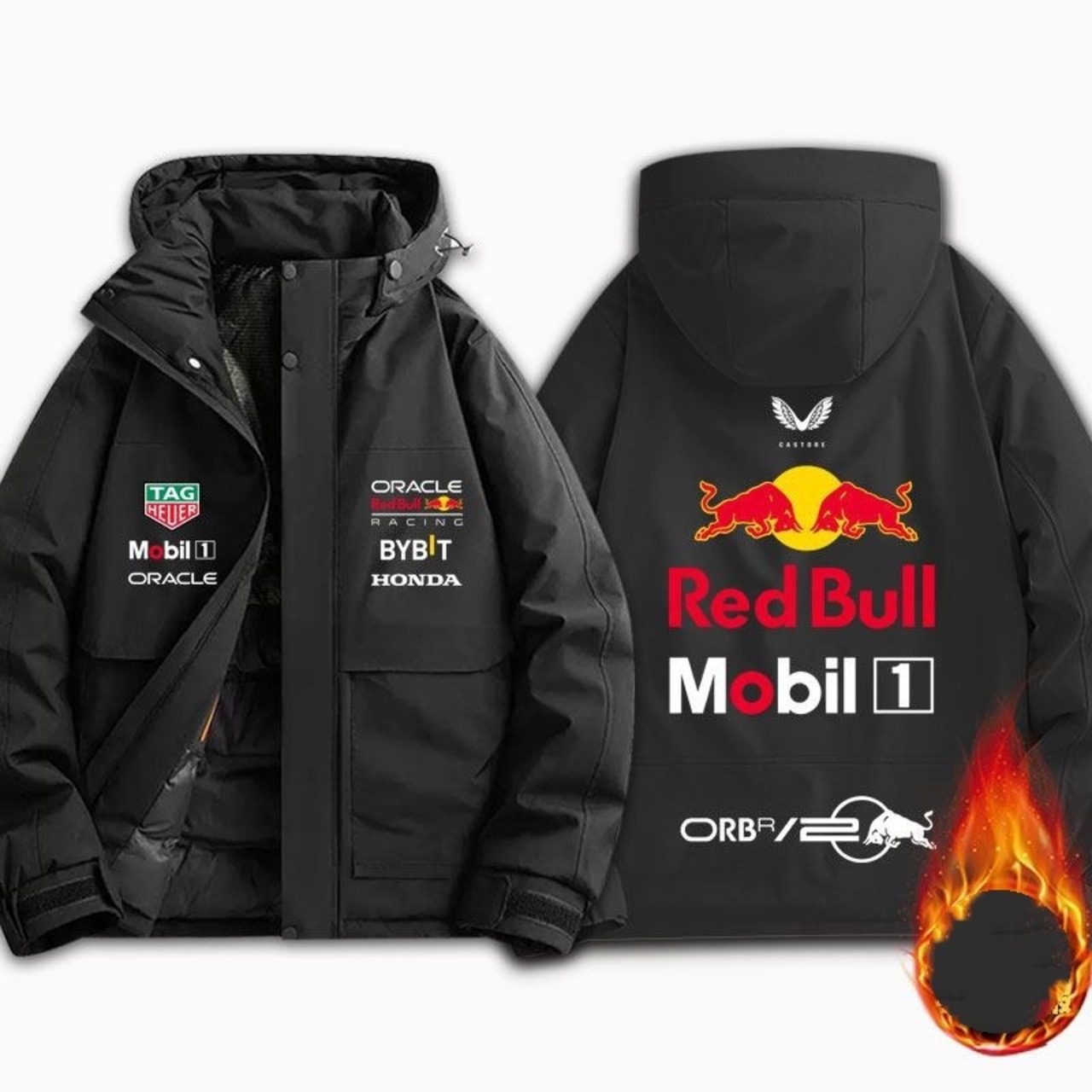 【半額!2月6日まで】カジュアル 防寒 撥水加工 バックビッグロゴ 男女兼用 3色展開 フード付き中綿ジャケット <S-12887>