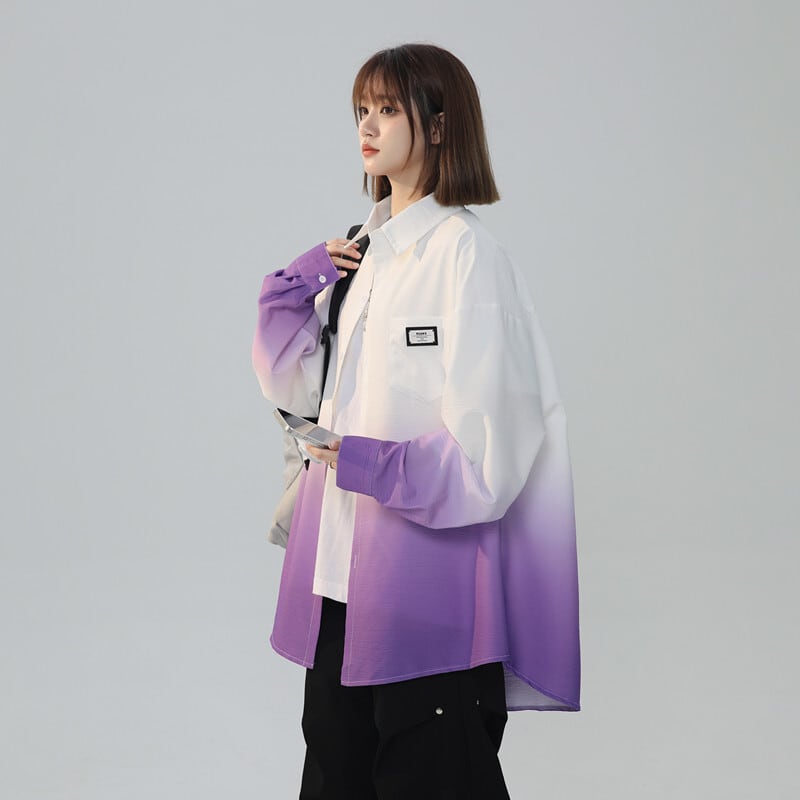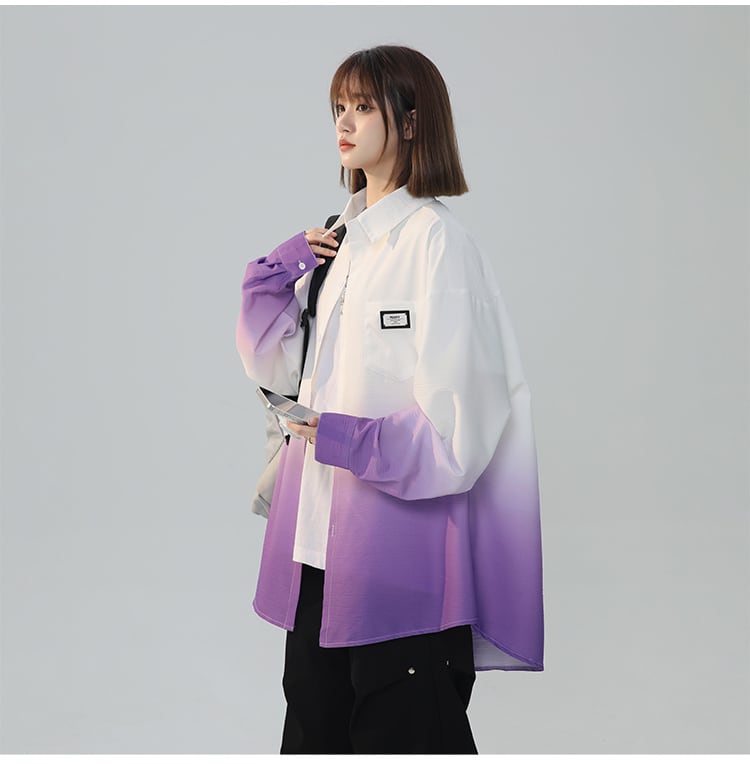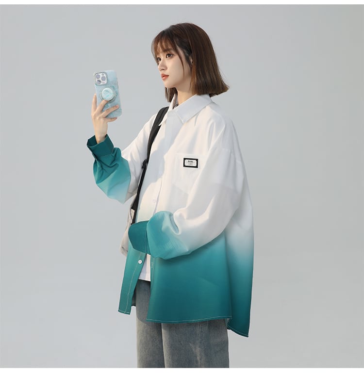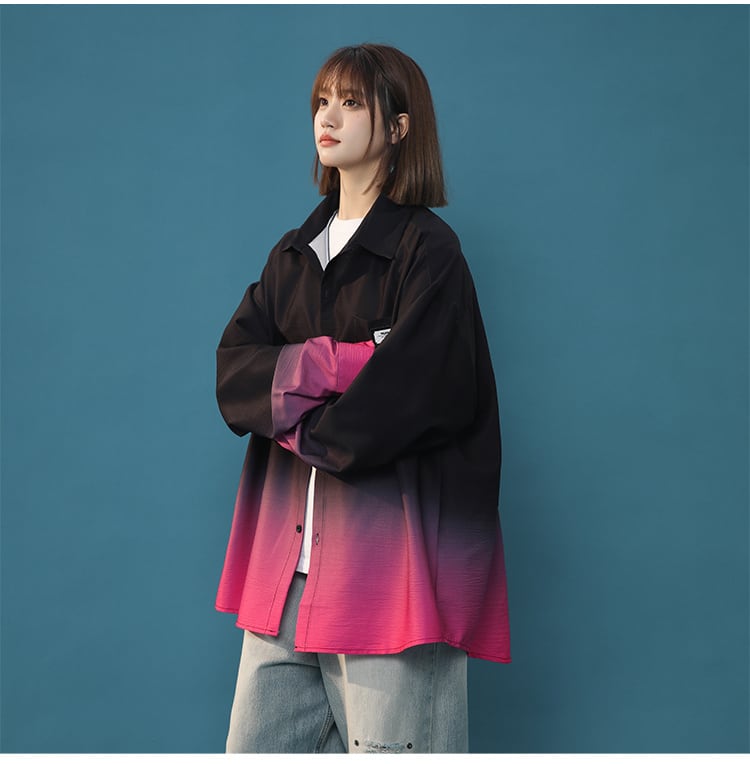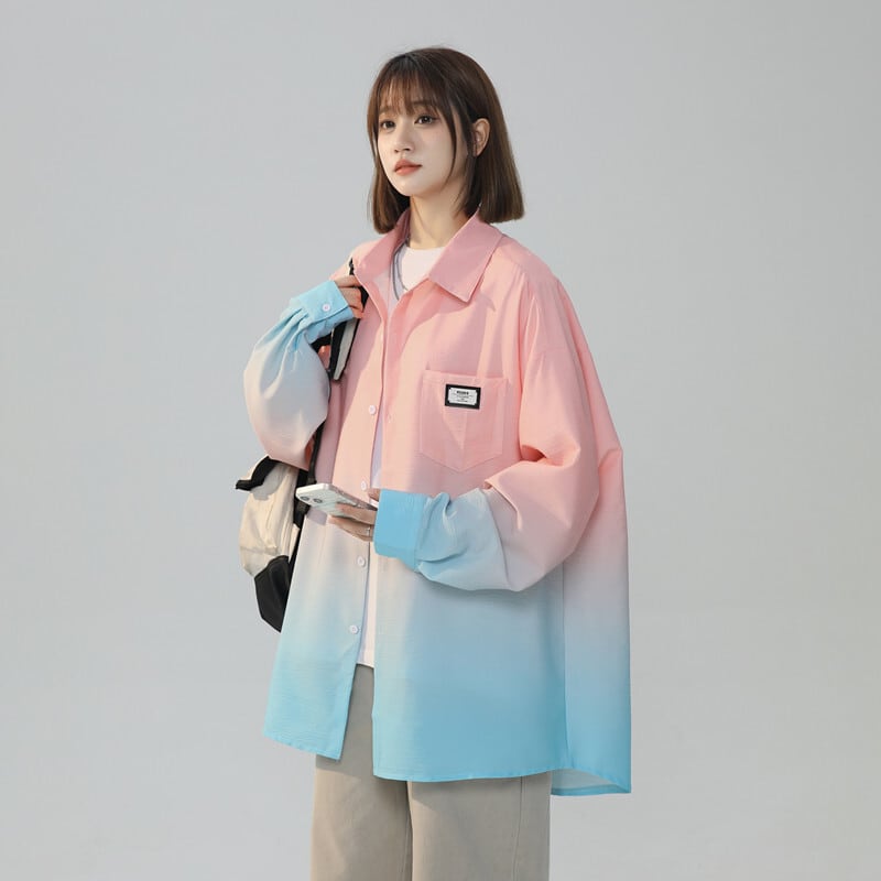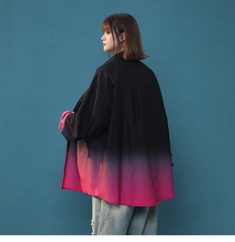 早い者勝ち 質感のいい グラデーション ゆったり 4色展開 シャツ <S-12990>