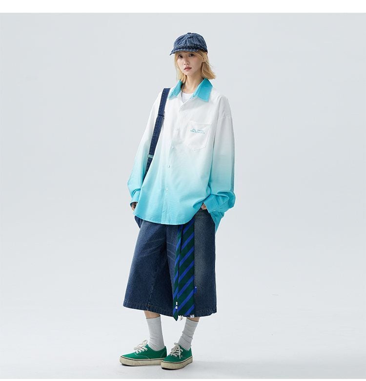 新作 おしゃれ グラデーション レディース 長袖 シャツ <S-13019>