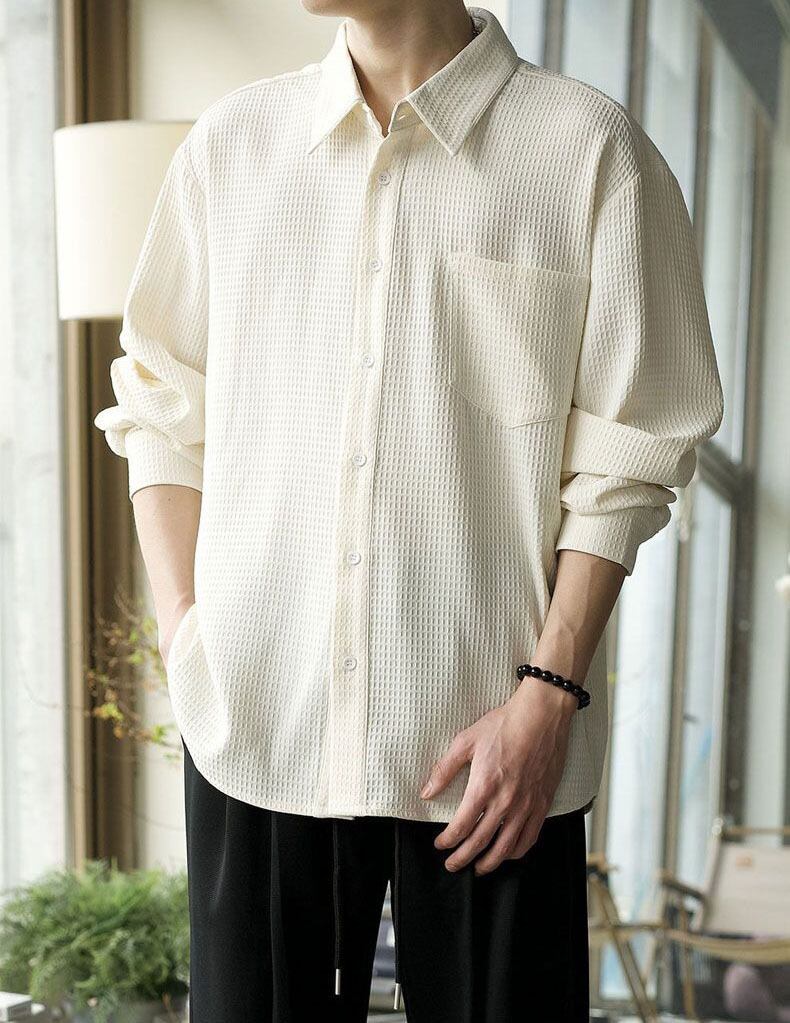 【春新作】ワッフル 通気性 カジュアル 男女兼用 シャツ <S-13113>