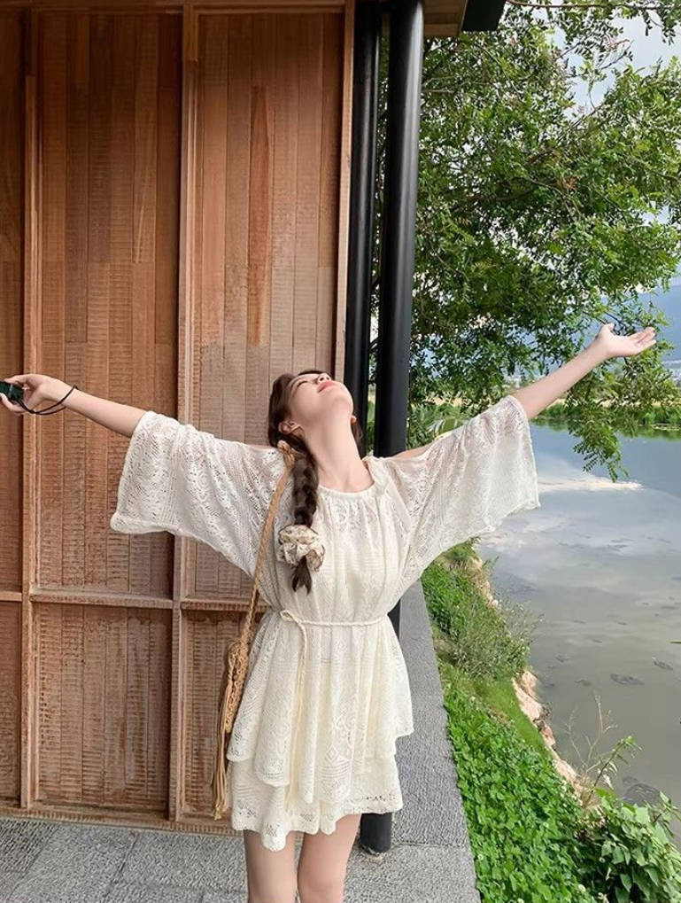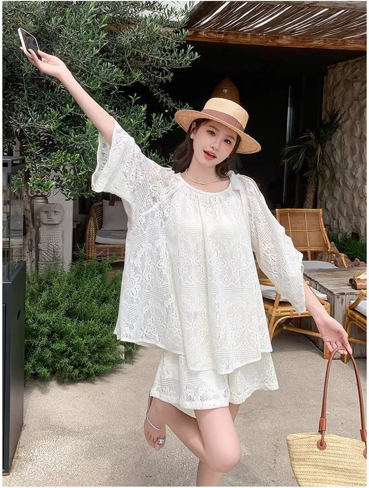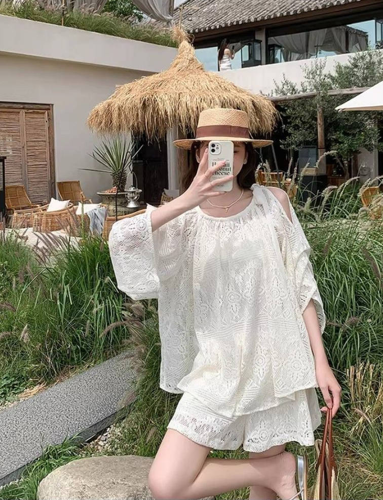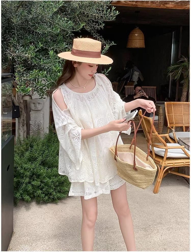人気沸騰 肩出しデザイン レース 通気性 セットアップ <S-13108>