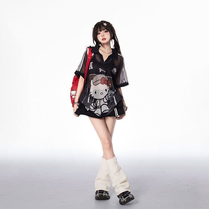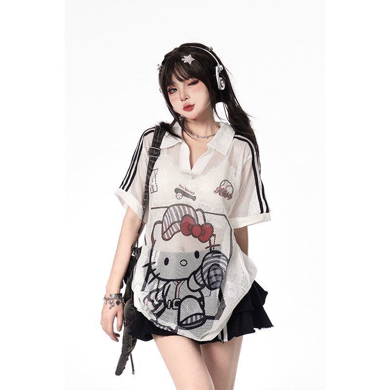 夏新作 メッシュ プリント Tシャツ <S-13168>